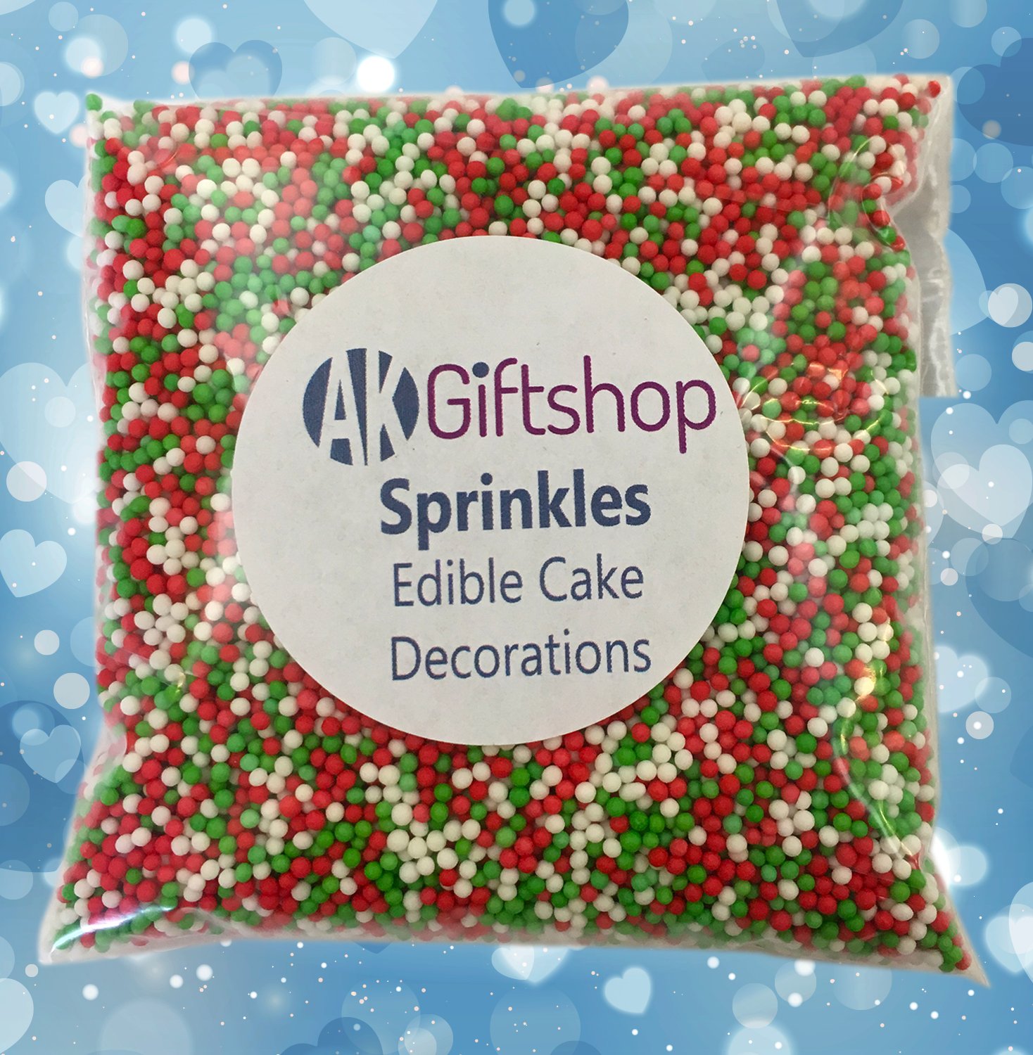 AK Giftshop Red, Green and White Sprinkles (Christmas Mix) Hundreds and Thousands, Edible Cake Decorations (200g)
