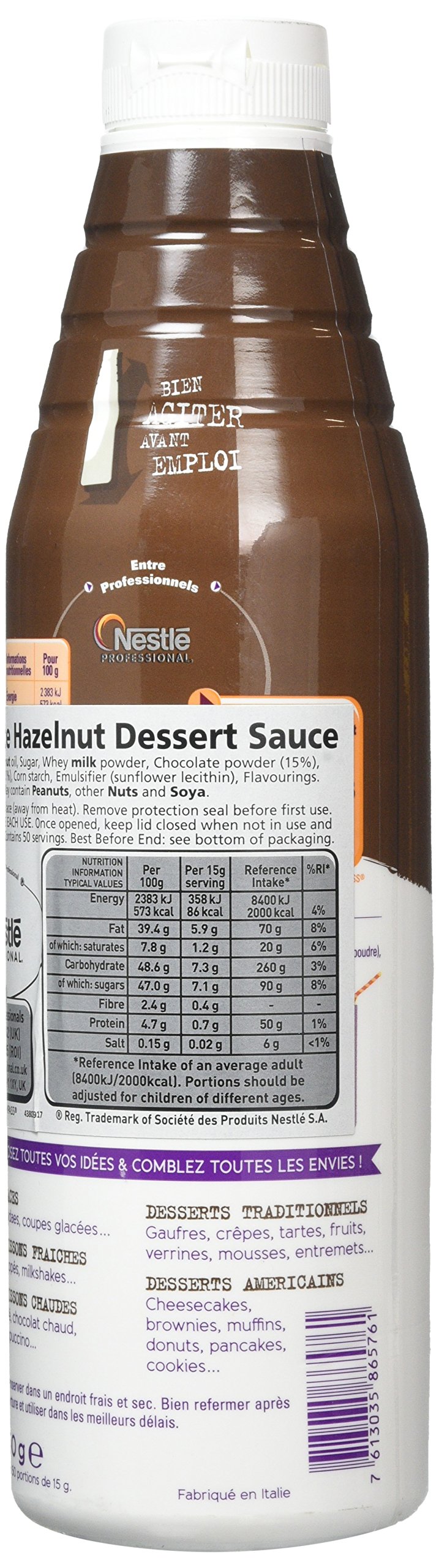 A qualified dessert sauce with a chocolate and hazelnut profile