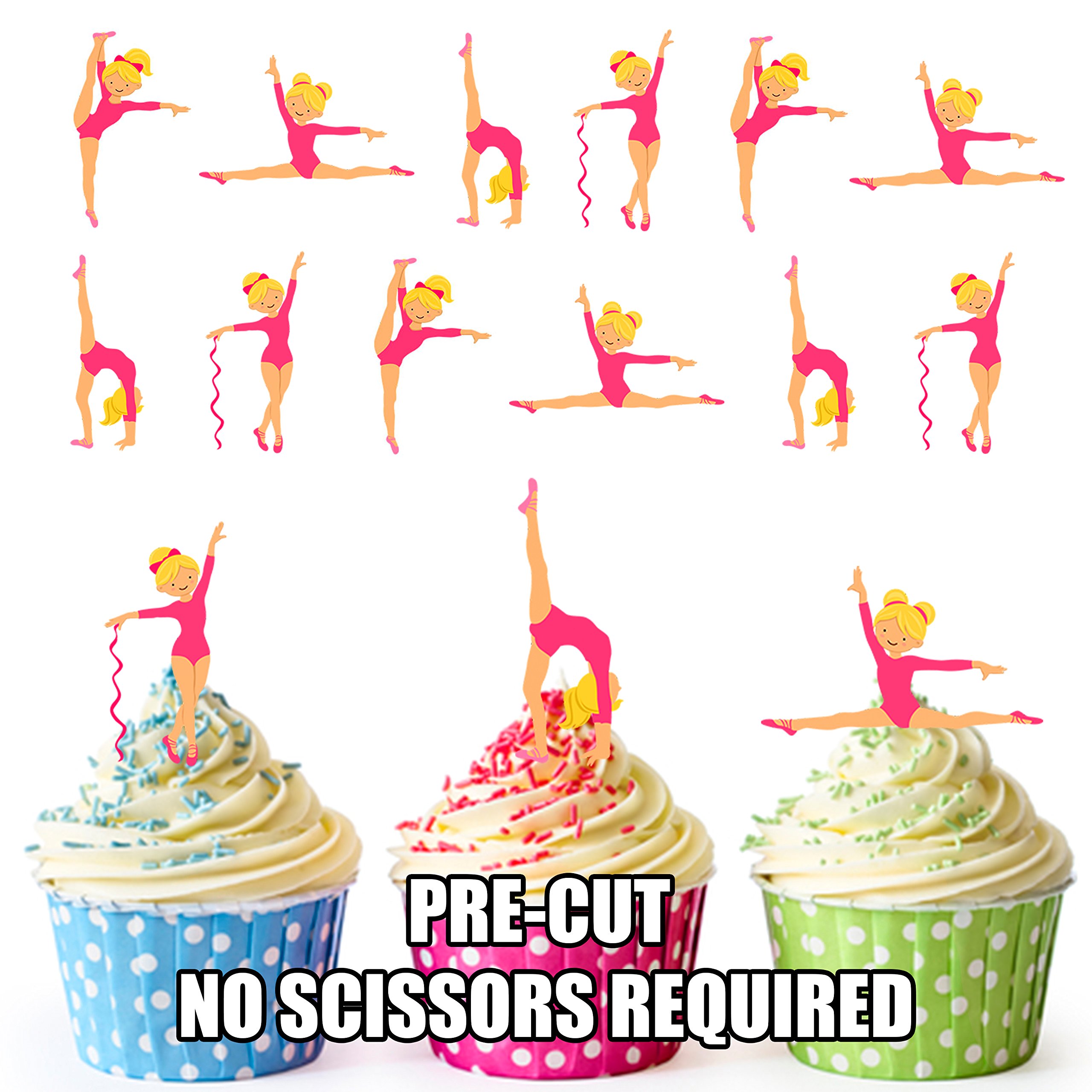 AK Giftshop PRE-CUT Pretty Pink Gymnastics Girls – Edible Cupcake Toppers/Cake Decorations (Pack of 12)