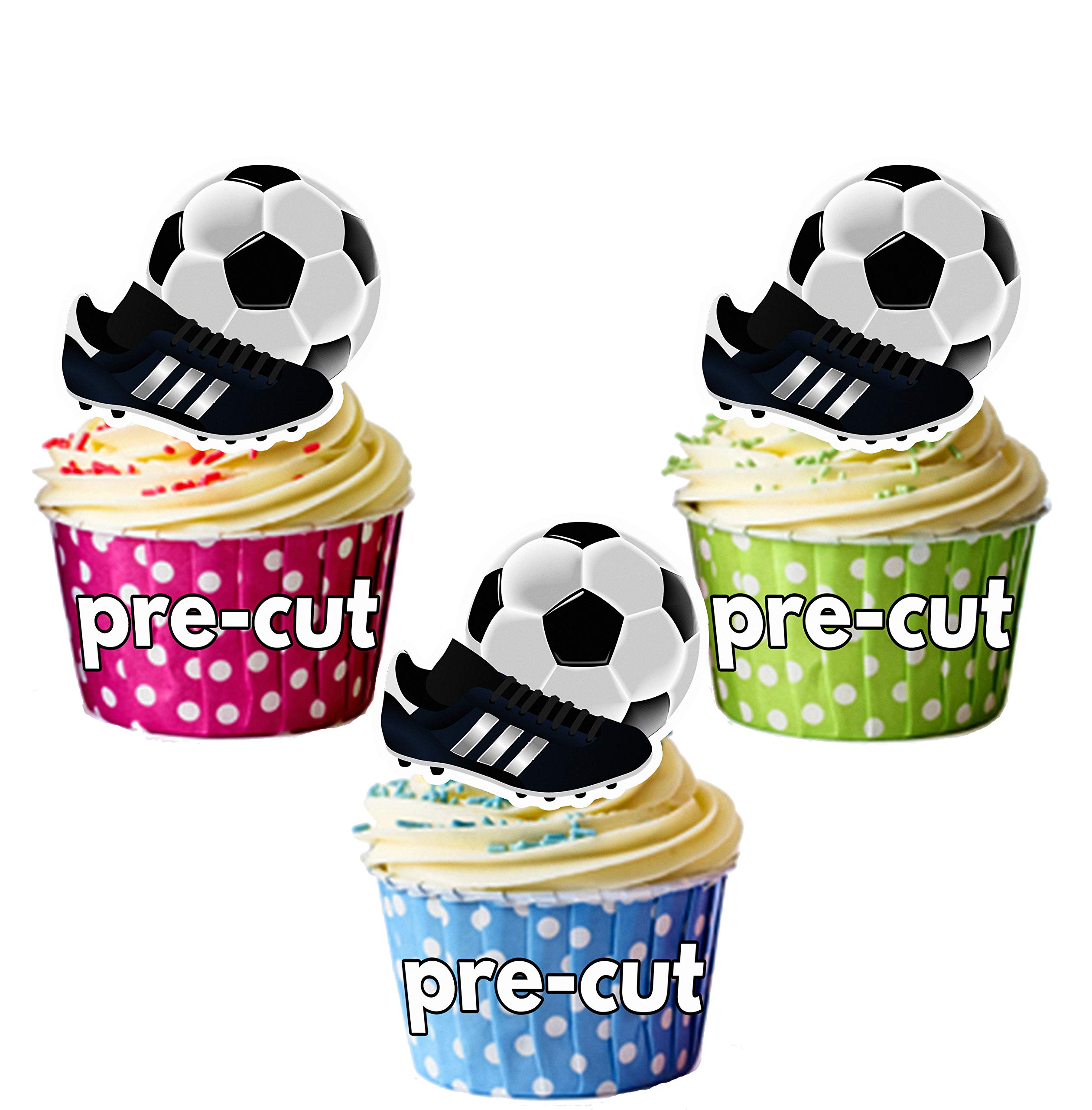 Football And Boot – Edible Cupcake Toppers/Cake Decorations (Pack of 12)