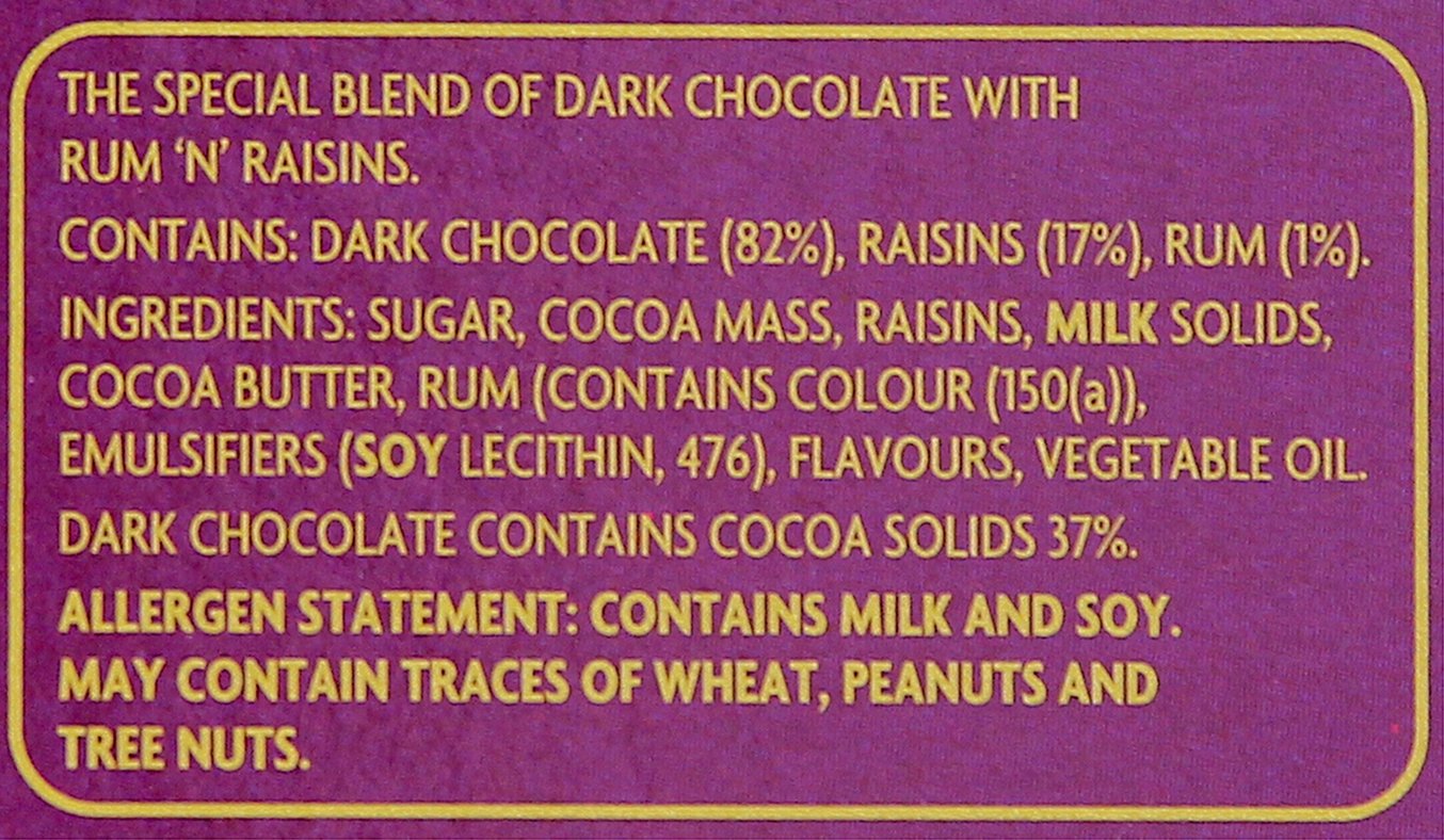 A unique mix of Darkish Chocolate with Rum’n’Raisins.