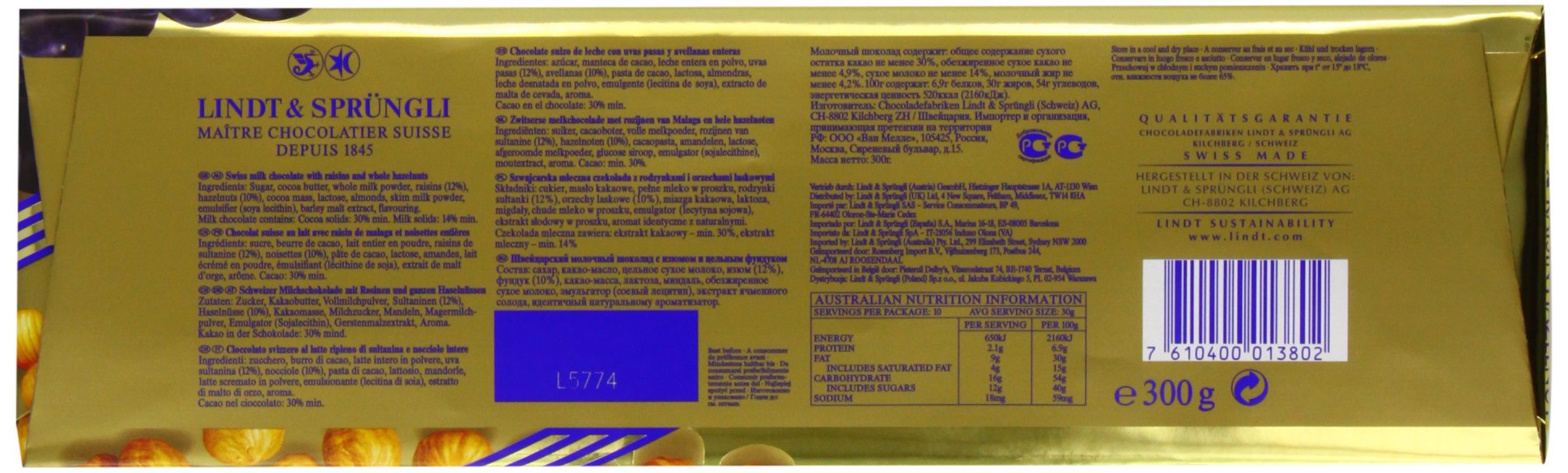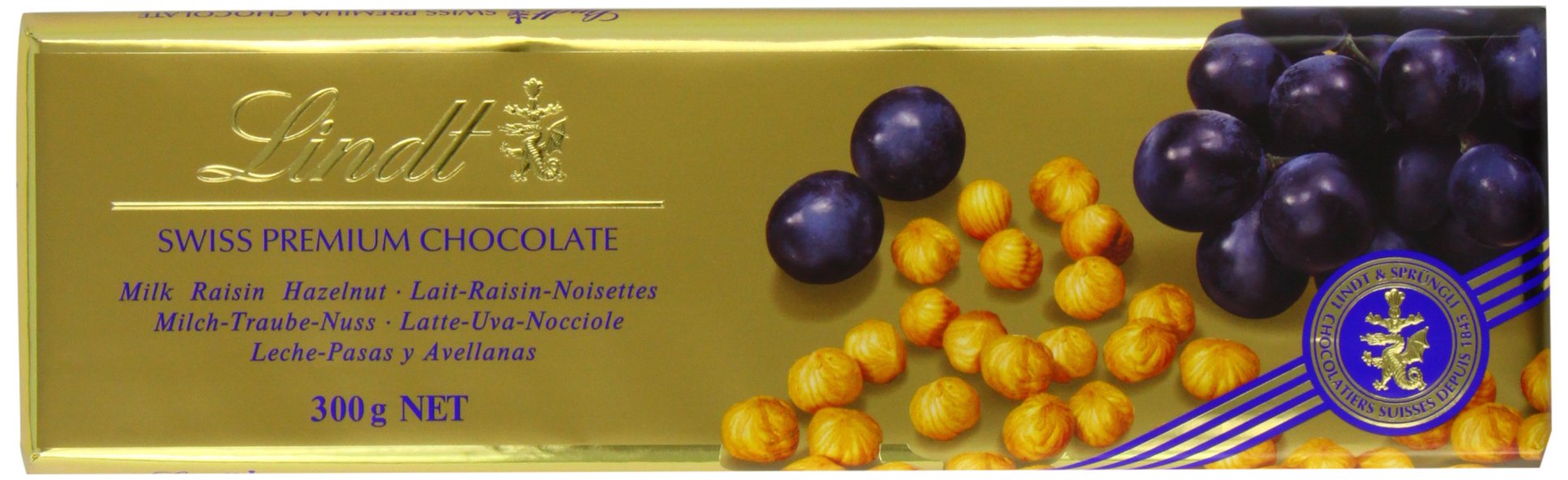 Lindt Hazelnut and Raisin Gold Chocolate Bar, 300g