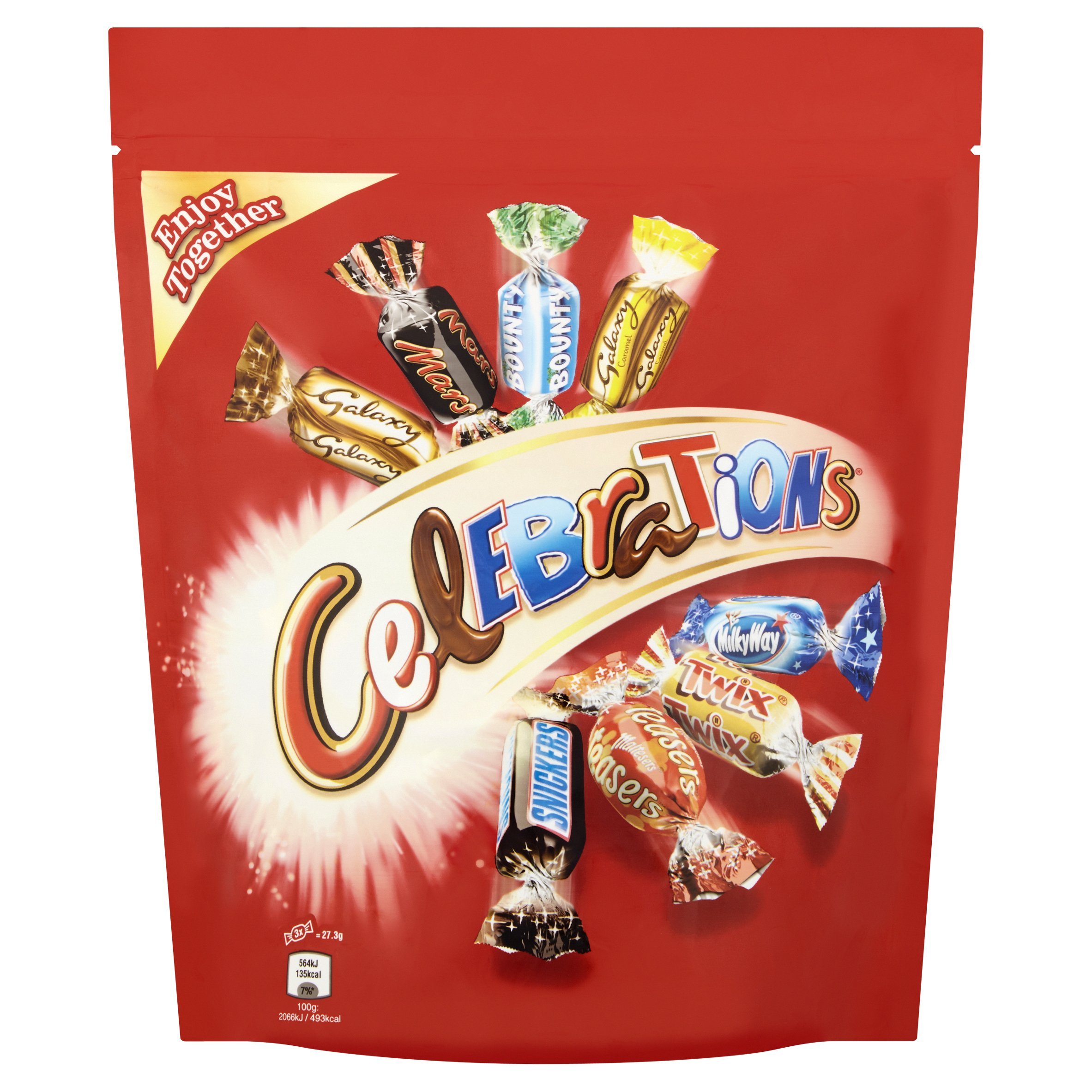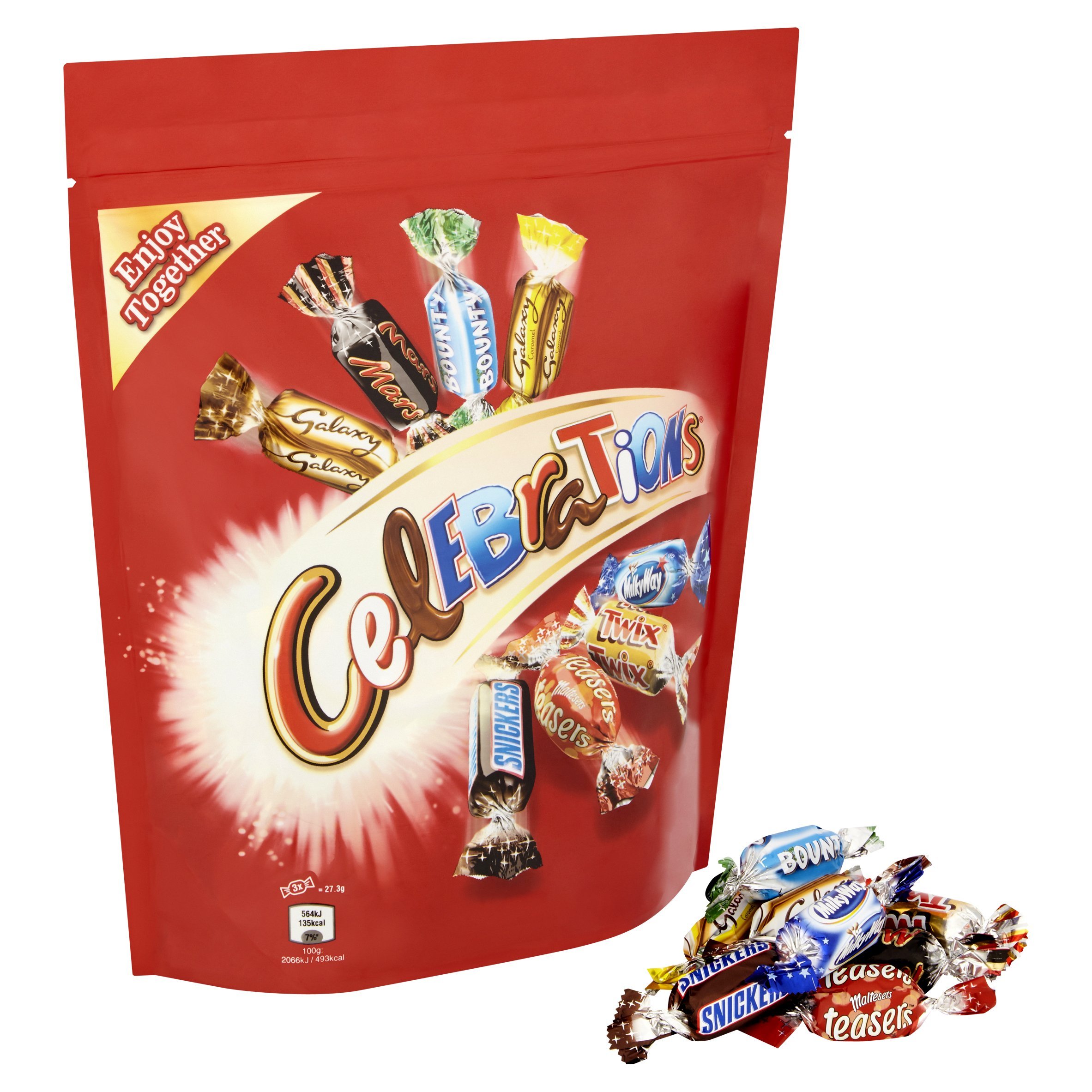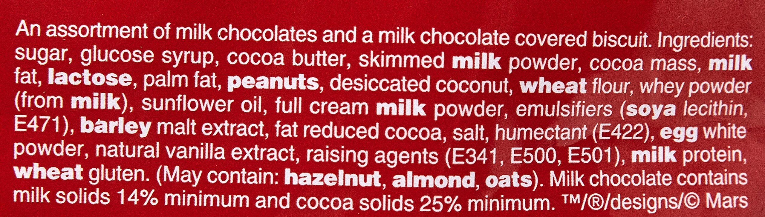 Accommodates Maltesers Teasers, Galaxy Milk, Galaxy Caramel, Mars, Snickers, Twix, Milky Means and Bounty