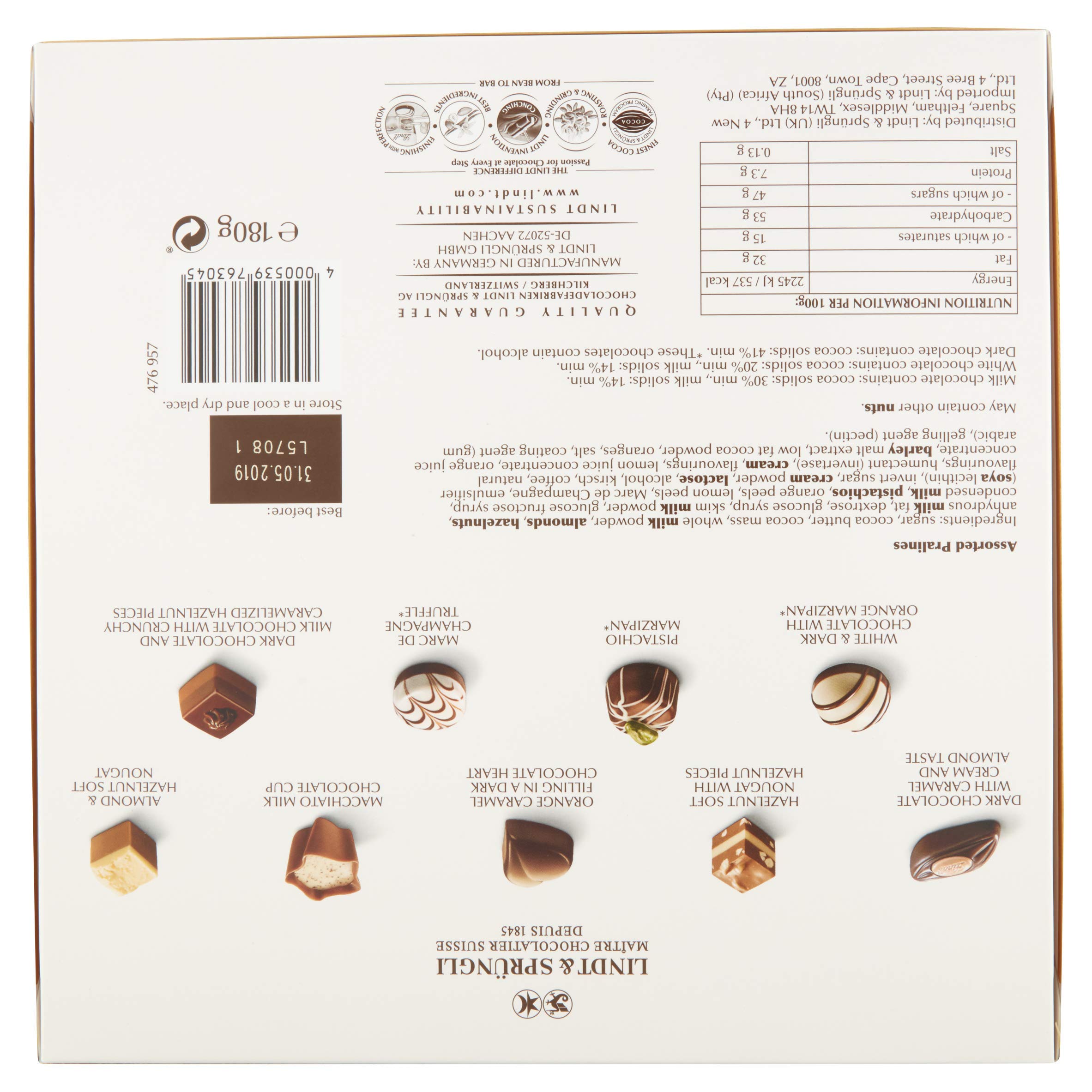 Incorporates: Darkish and milk chocolate with almond cream and almond items, white and milk chocolate with