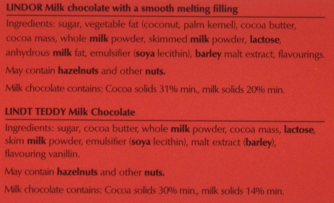 4 Lindt Lindor milk chocolate crackers encased in a present field