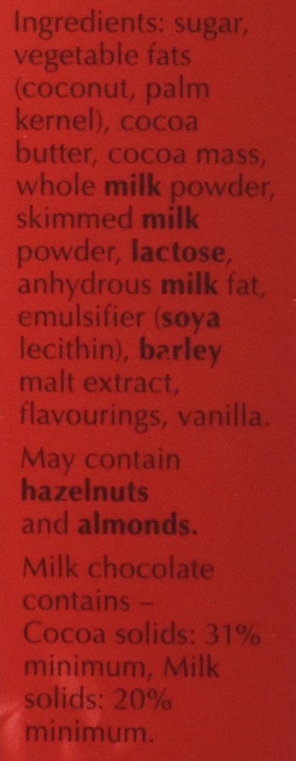 Milk chocolate accommodates 30% cocoa solids and 14% milk solids
