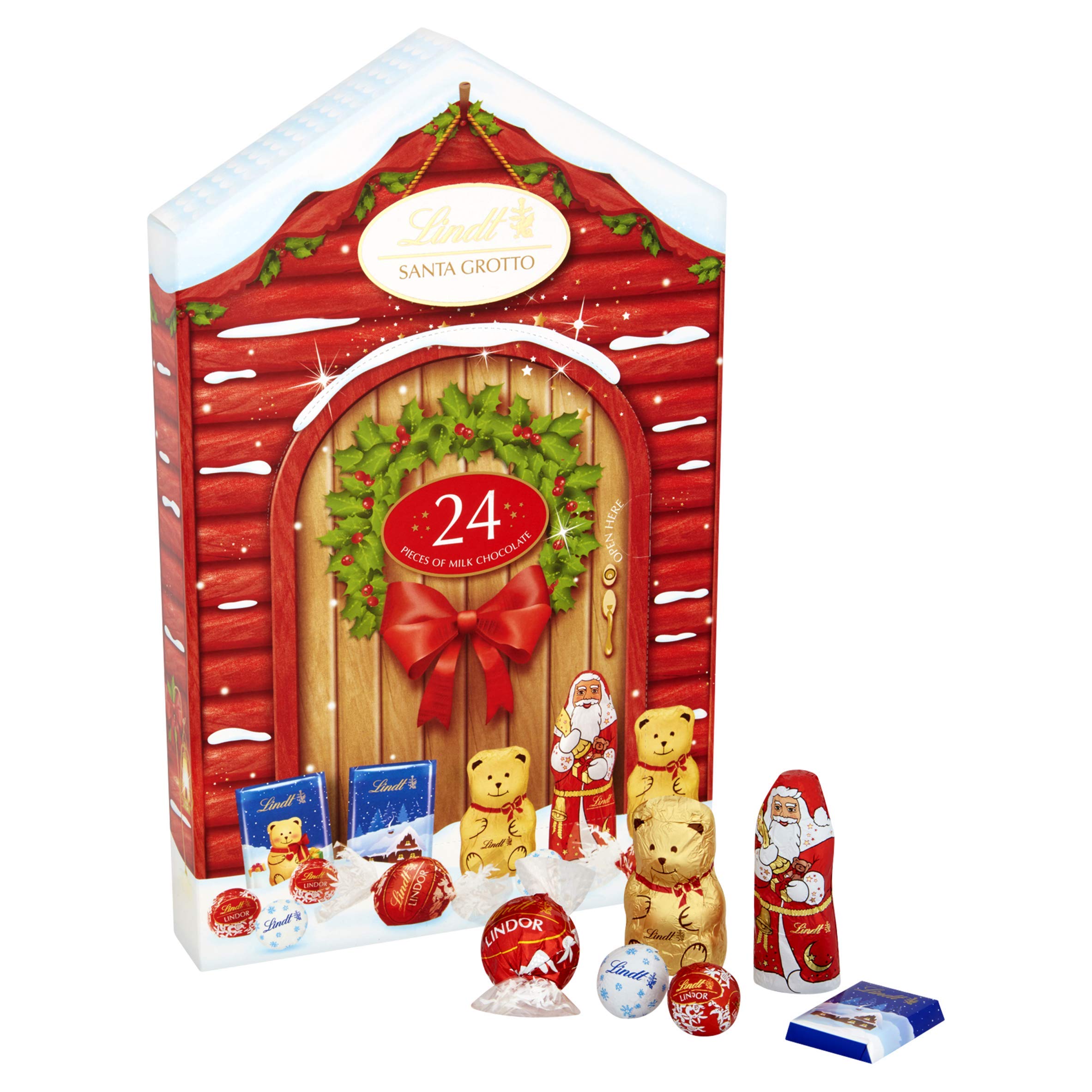 24 items of Lindt milk chocolate in an adorable Santa grotto field