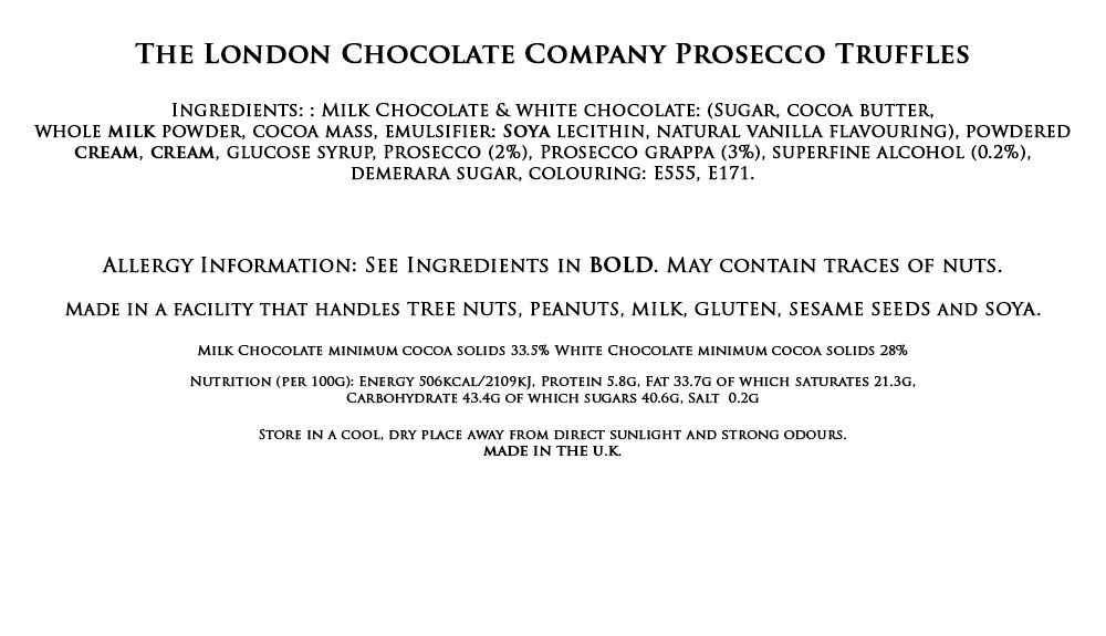 Artisan truffles with premium Prosecco, finished with an excellent milk chocolate shell.