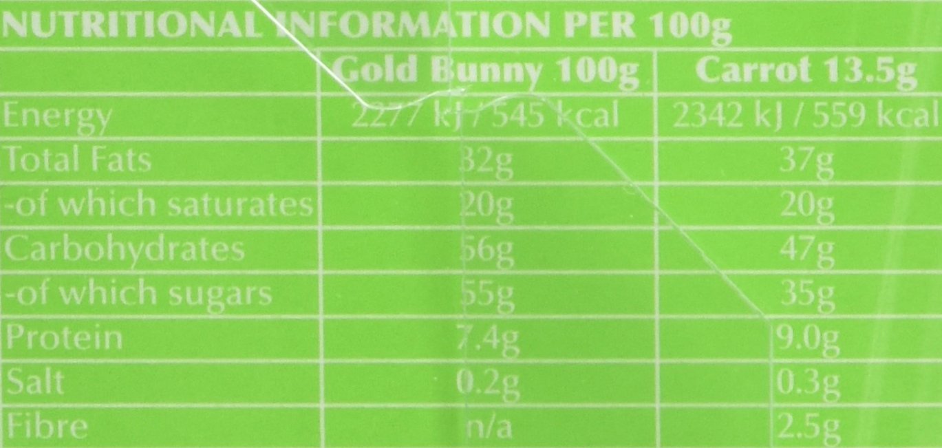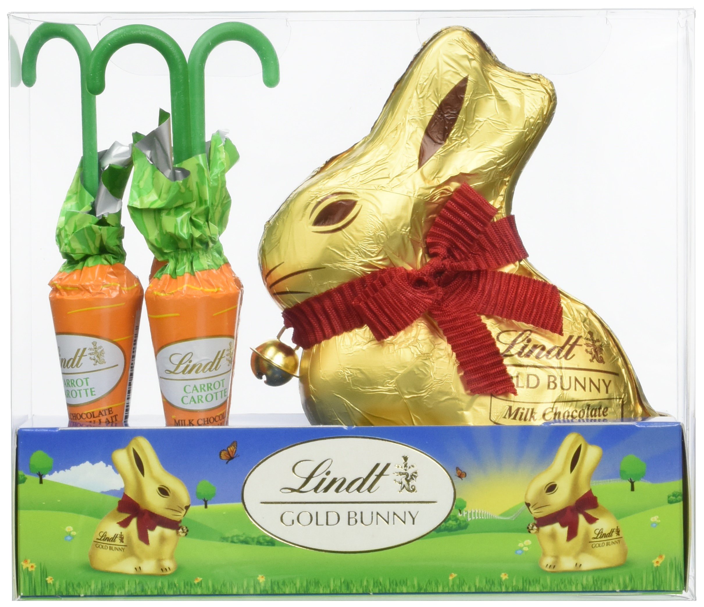 Lindt milk chocolate Gold Bunny together with 3 Lindt double milk chocolate carrot sticks