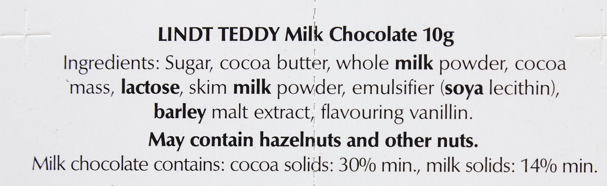 Might contain traces of hazelnuts and almonds