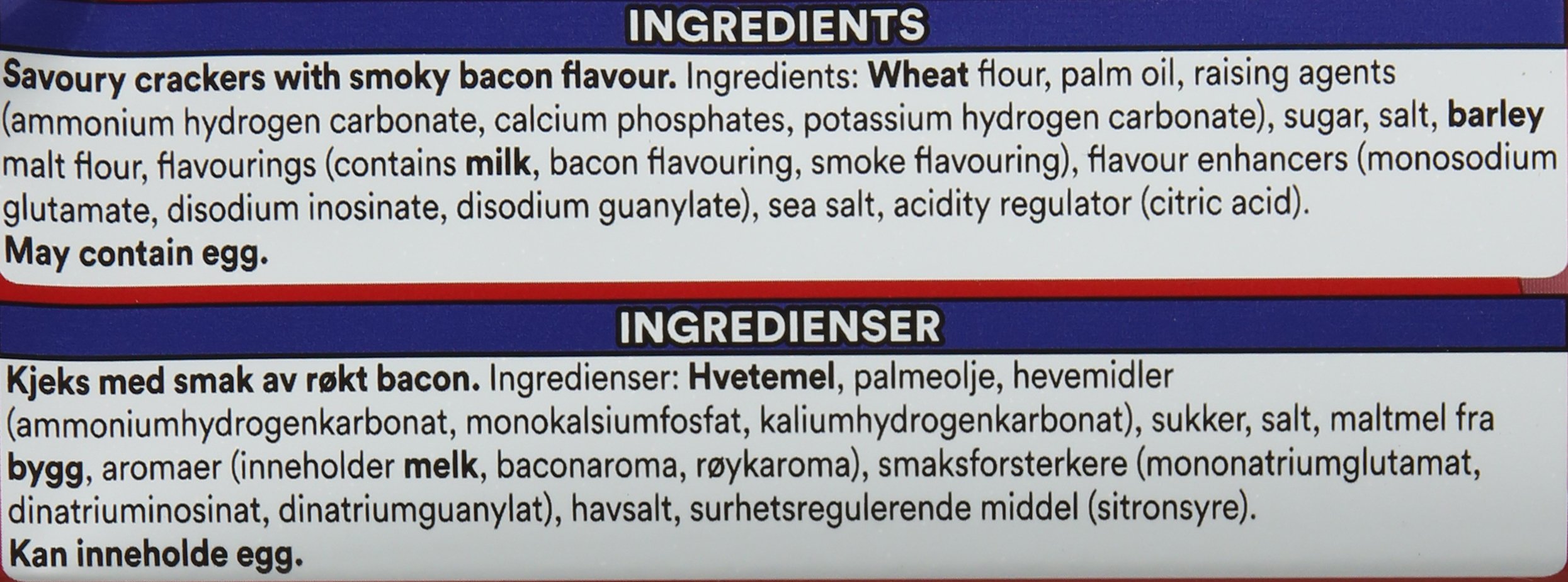 Particular person packs of 5 scrumptious smoky bacon flavour biscuits product of 3 crackers to snap off and revel in