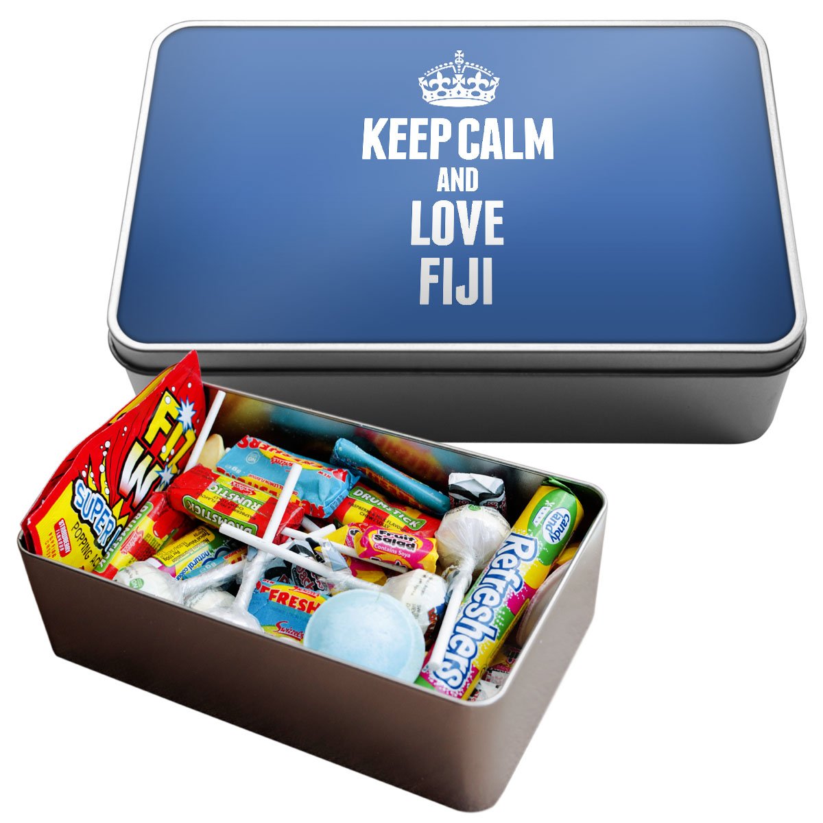 Duke Gifts BLUE Keep Calm and Love Fiji Large Retro Sweet Tin 2191