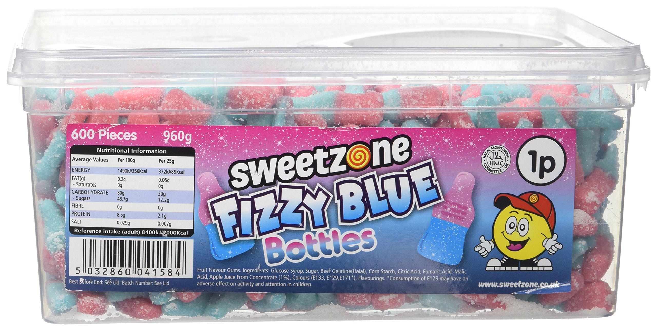 SweetZone 100% Halal Jelly Sweets – Fizzy Blue Bottles Tub of 600pcs