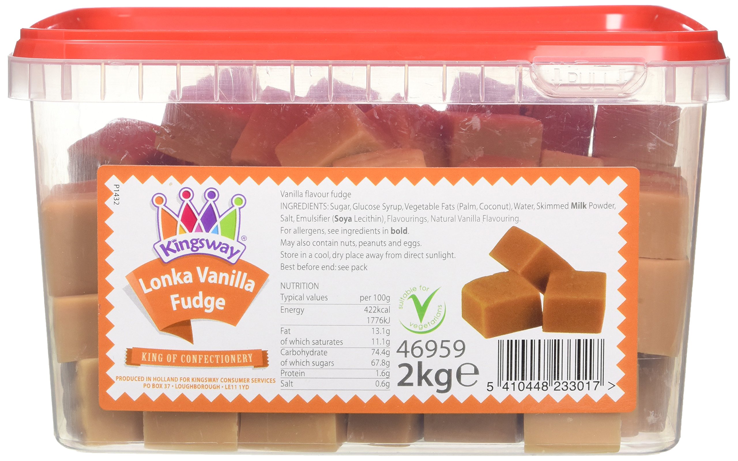 kingsway lonka vanilla fudge Unfashionable Sweet 2KG FULL TUB SUITABLE FOR VEGETARIANS ingredients Sugar glucose syrup vegetable fats (palm; coconut) water skimmed milk powder salt emulsifier (soya lecithin) flavourings Symbol