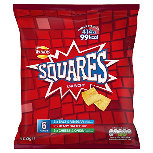 Comprises 6 x cheese and onion, 6 x able salted, 4 x salt and vinegar, 4 x prawn cocktail crisps