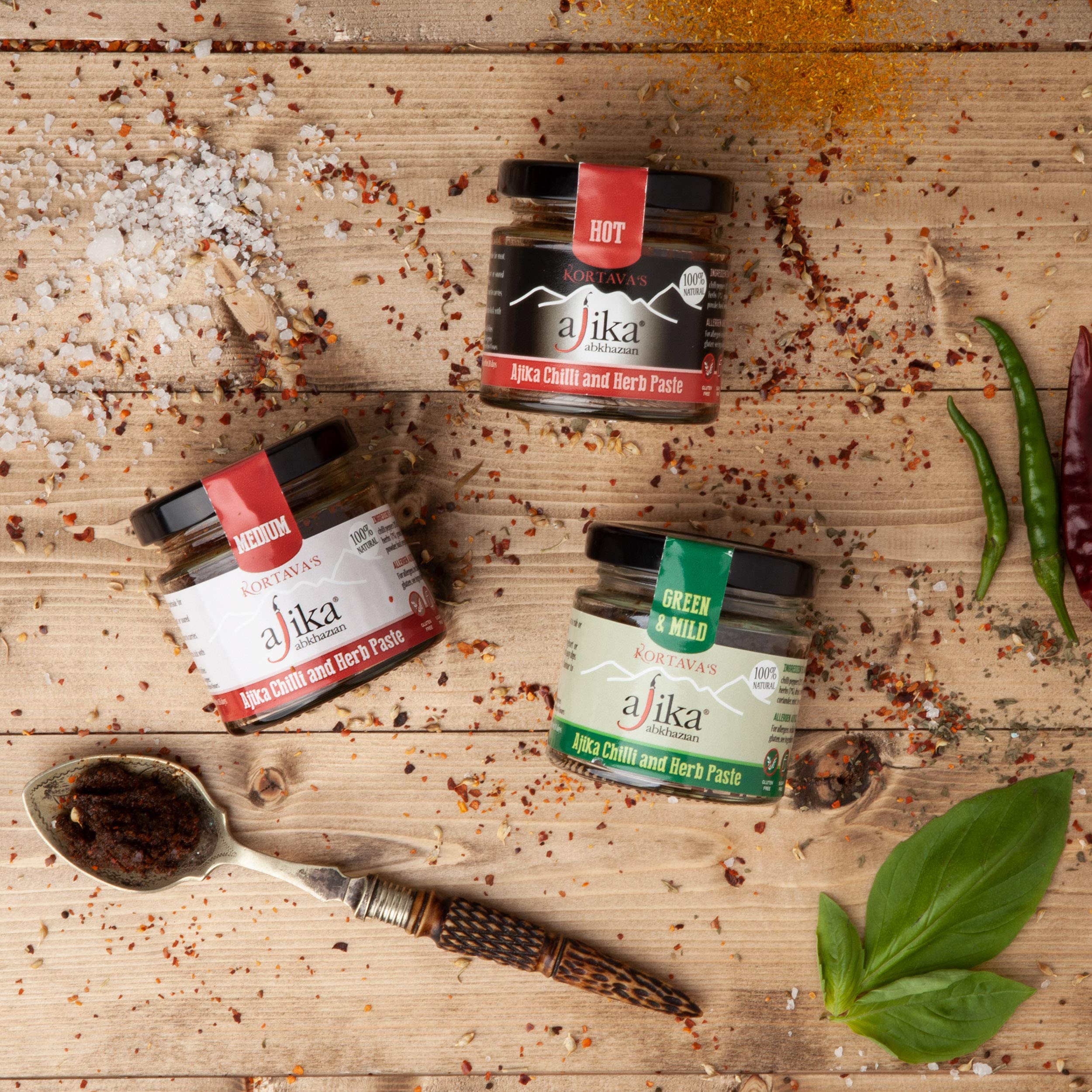 Ajika Chilli Paste Selection Pack (3 x 110g) – Delicious 100% Natural All-Purpose Spices For All Culinary Needs. Made in UK