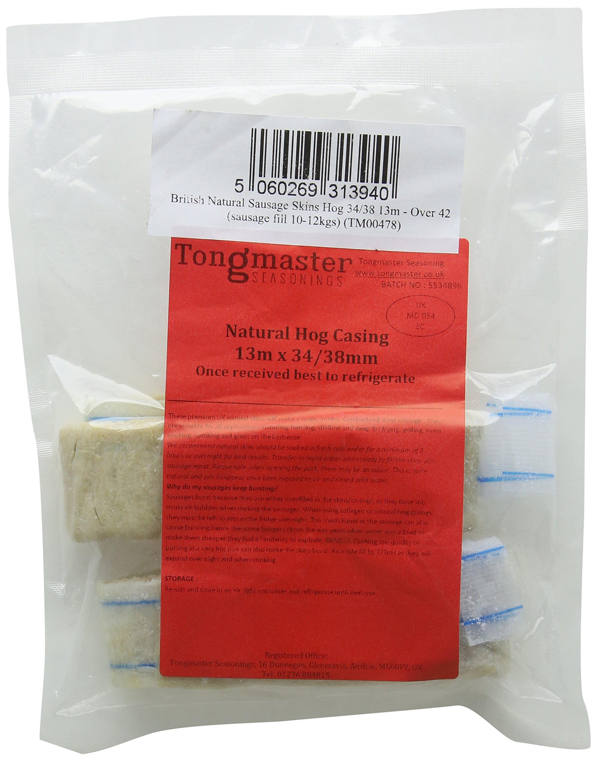 Tongmaster Premium British Natural Hog Sausage Casing Skin of 13 m Length x 34/38 mm Diameter