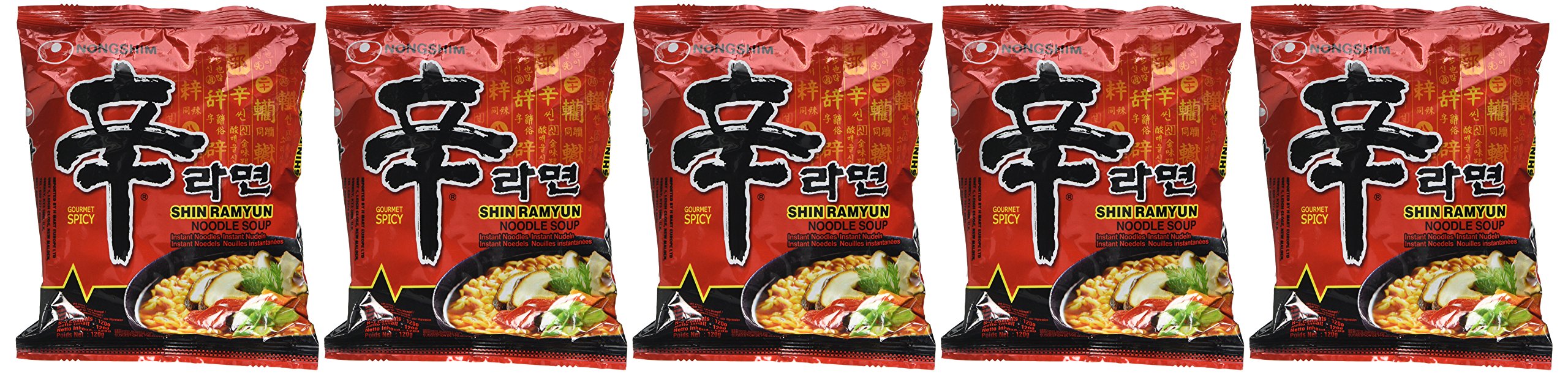Nong Shim Shin Ramyun Noodle Soup (Gourmet Spicy) 120 g pack of 5