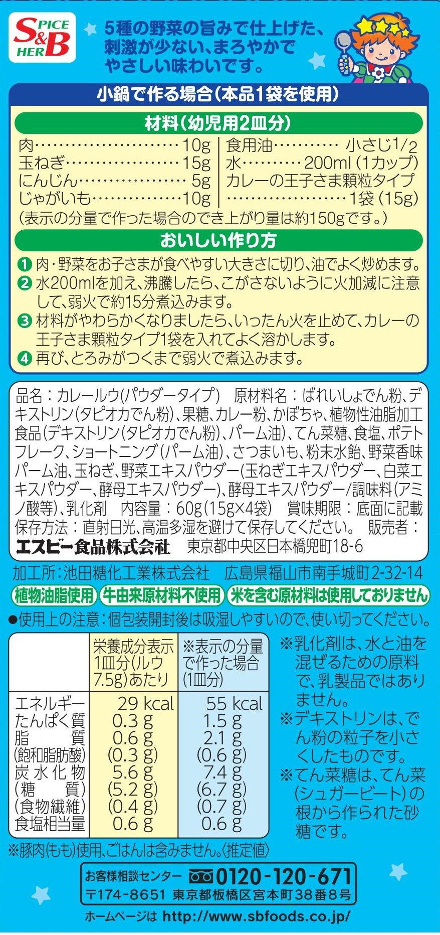 Ingredients: dextrin (tapioca starch), potato starch, curry powder, pumpkin, sugar beet sugar, fructose, salt, parsley, yeast extract powder, seasoning (amino acid and so forth), emulsifier