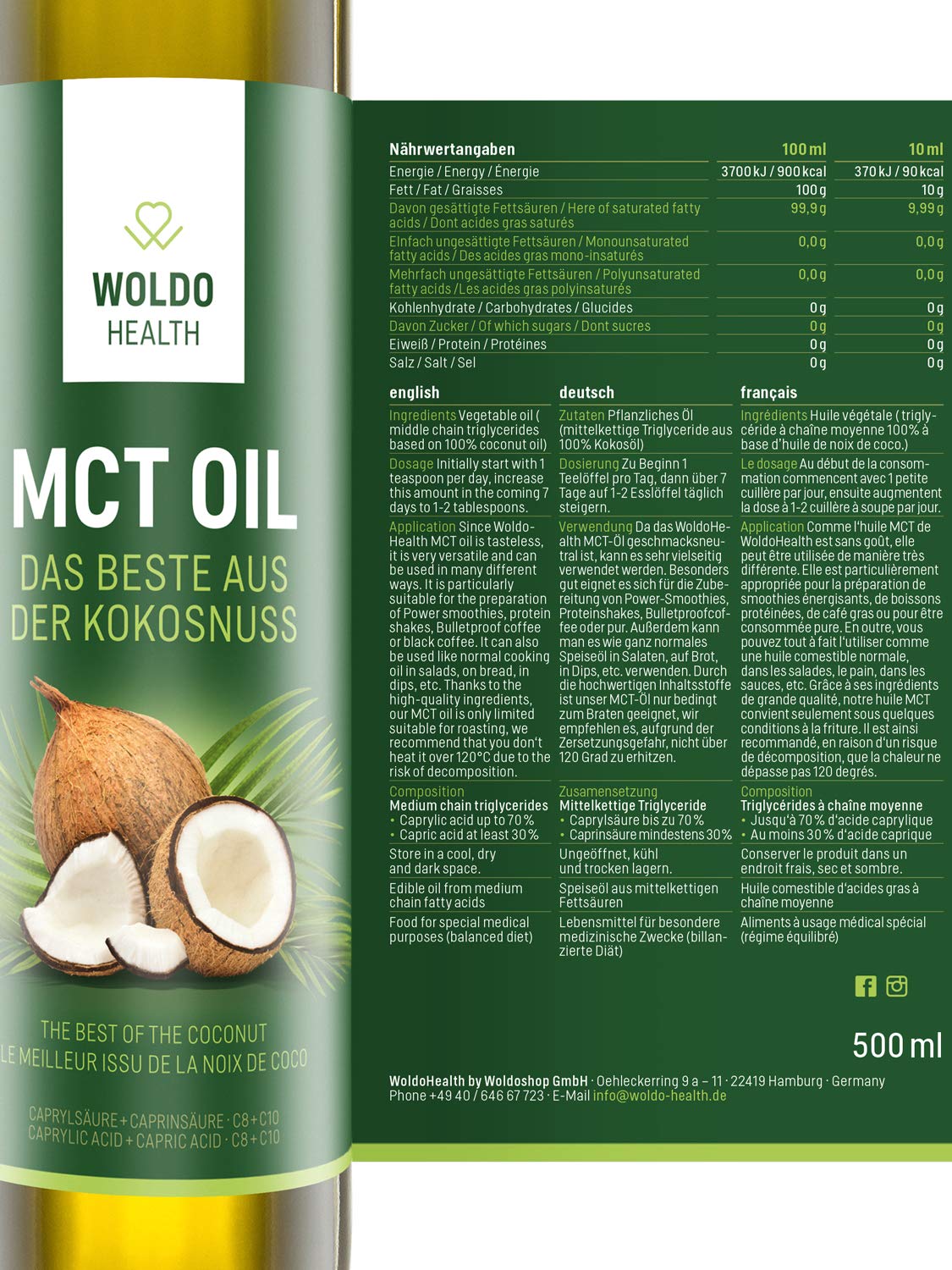 ✔ WoldoHealth MCT Oil 100 % based on coconut oil 16,91 oz.