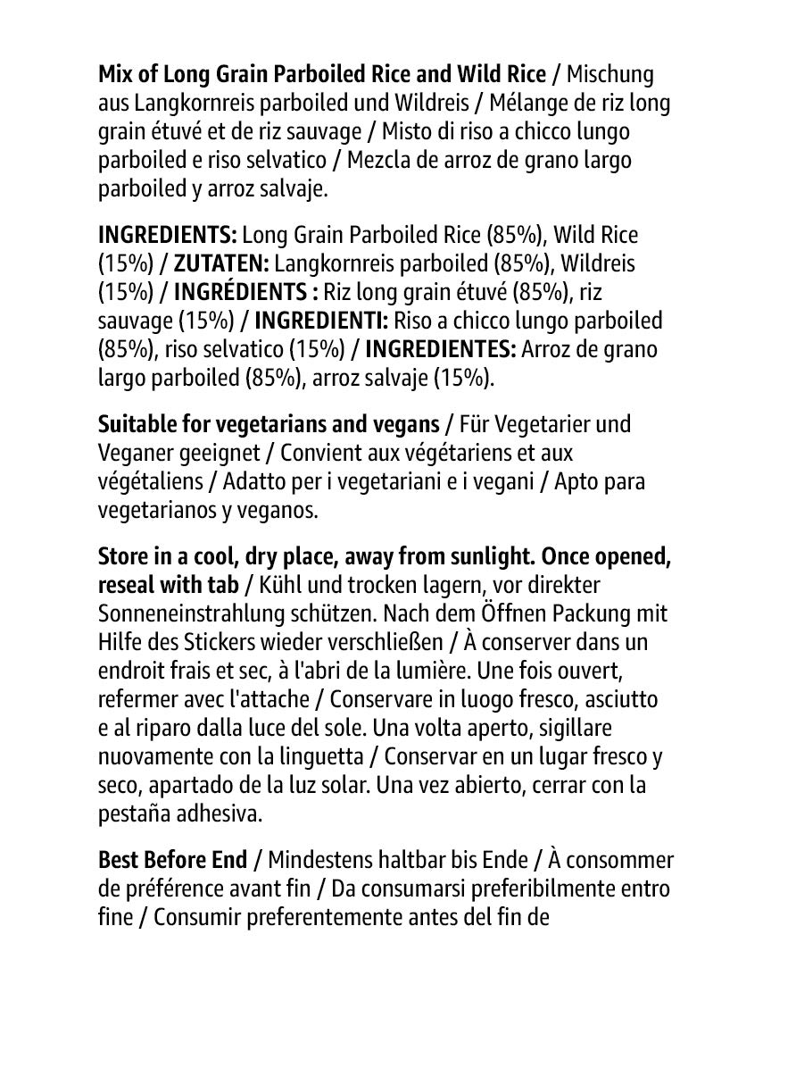 INGREDIENTS: Long Grain Parboiled Rice (85%), Wild Rice (15%)