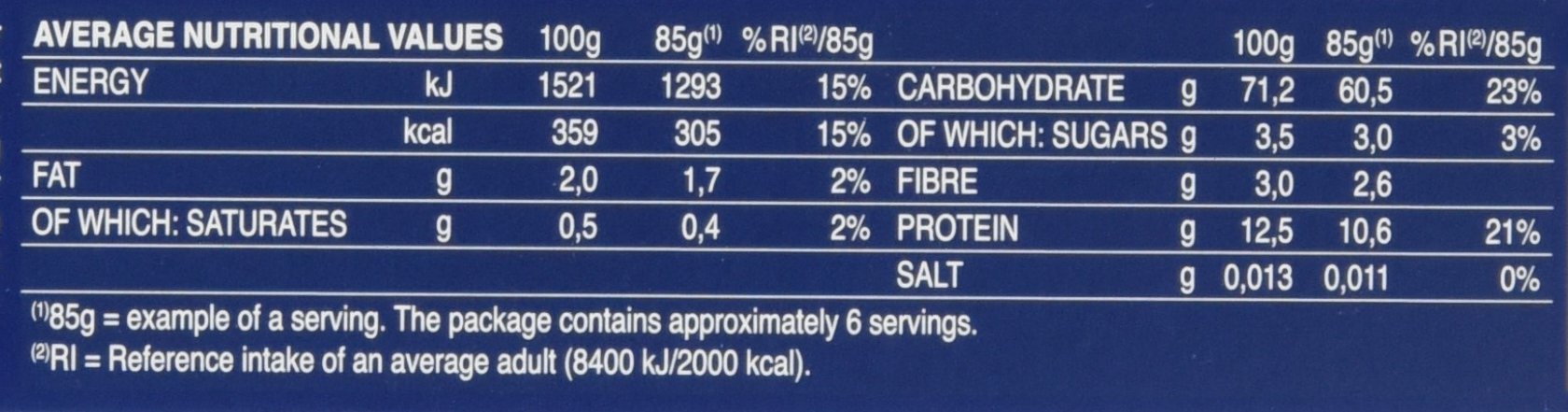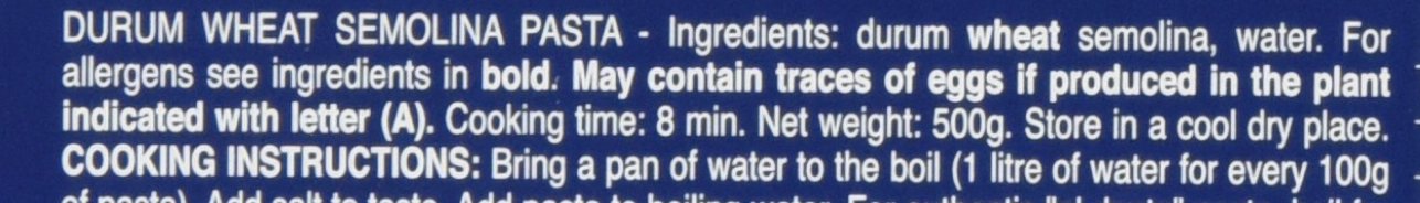 Comprised of durum wheat semolina