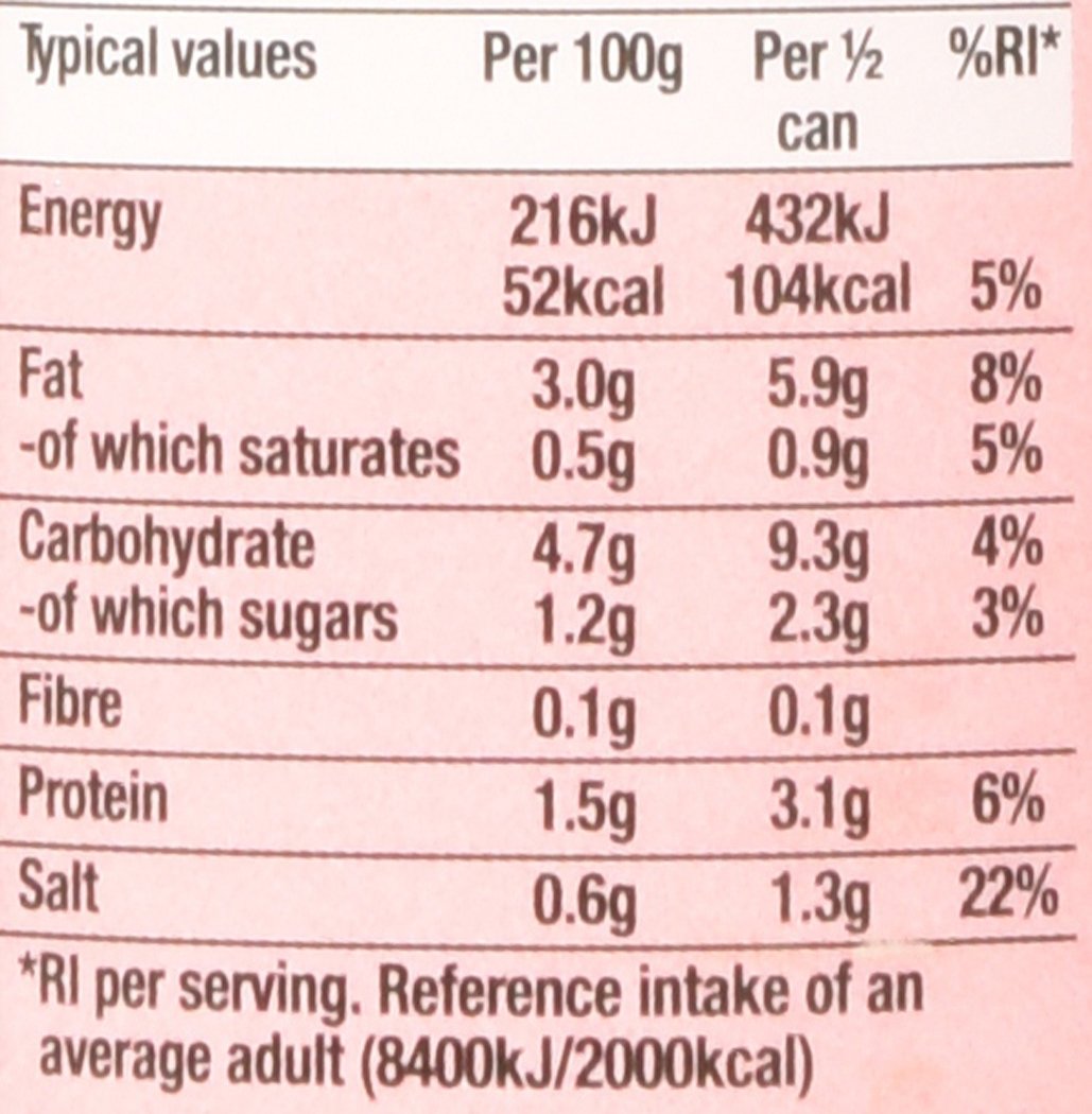 Comprises 139 energy per 1/2 can