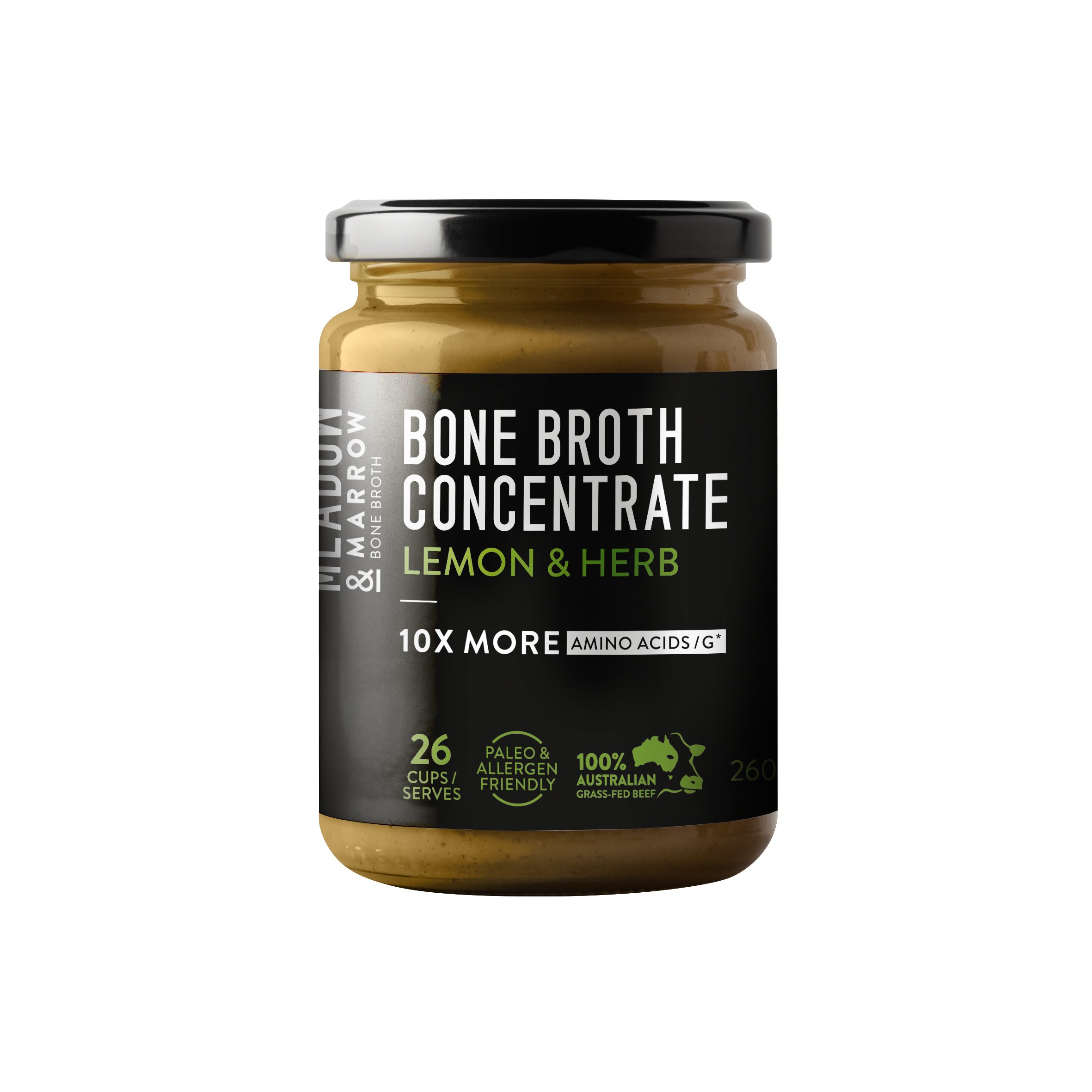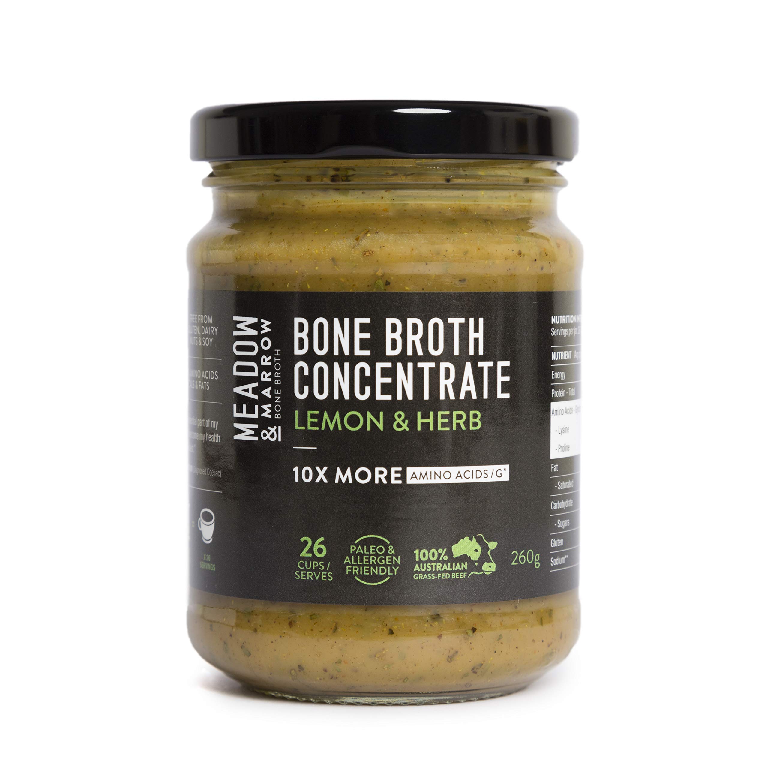 Meadow & Marrow Beef Bone Broth Concentrate – Lemon Herb Flavour- 260 Grams – Australian Grass Fed Beef- 10 X More Amino Acids/G* Free from Gluten, Diary, Nuts & Soy