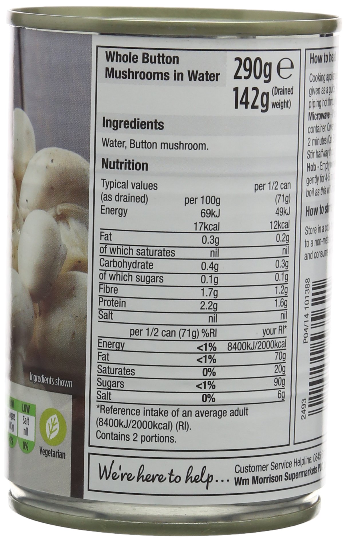 Morrisons Whole Button Mushrooms, 290g
