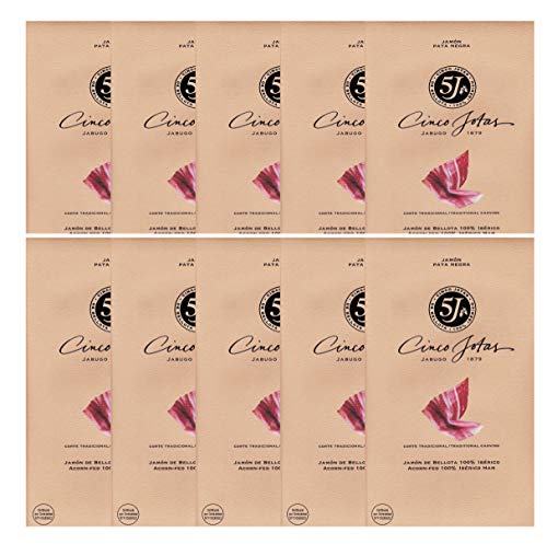 ENVELOPES – The Iberian Acorn Ham Cinco Jotas is the Authentic Treasure of Our Heritage. An unparalleled product constituted of the hind legs of the Iberian pig raised in freedom in the Dehesas of the southwest peninsular. Cinco Jotas puts at your fingertips an unmatched product, the only ham that preserves the purity and uniqueness of the breed from which it comes and that, on the same time, releases textures and aromas that conquer the most demanding palates. Buy Iberian ham Cinco Jotas is a protected bet. Cinco Jotas 100% Iberian Acorn-fed Ham Sliced 80 g The authentic Cinco Jotas 100% Iberian Acorn-fed Ham cut by hand and presented in a person 80 gram envelope. A lovely ham cut by hand patiently by the Master Cutters. It assists in keeping the properties of the product unchanged thanks to the slow cut, which prevents conceivable friction or heating. Its comfortable packaging and delicate slicing allow immediate consumption and be ready to transport the aroma and flavor of a Cinco Jotas immediately from the pasture to your table. A 100% healthy product, indispensable in a Mediterranean diet. Enjoy the authentic Iberian ham on this practical and functional pack.