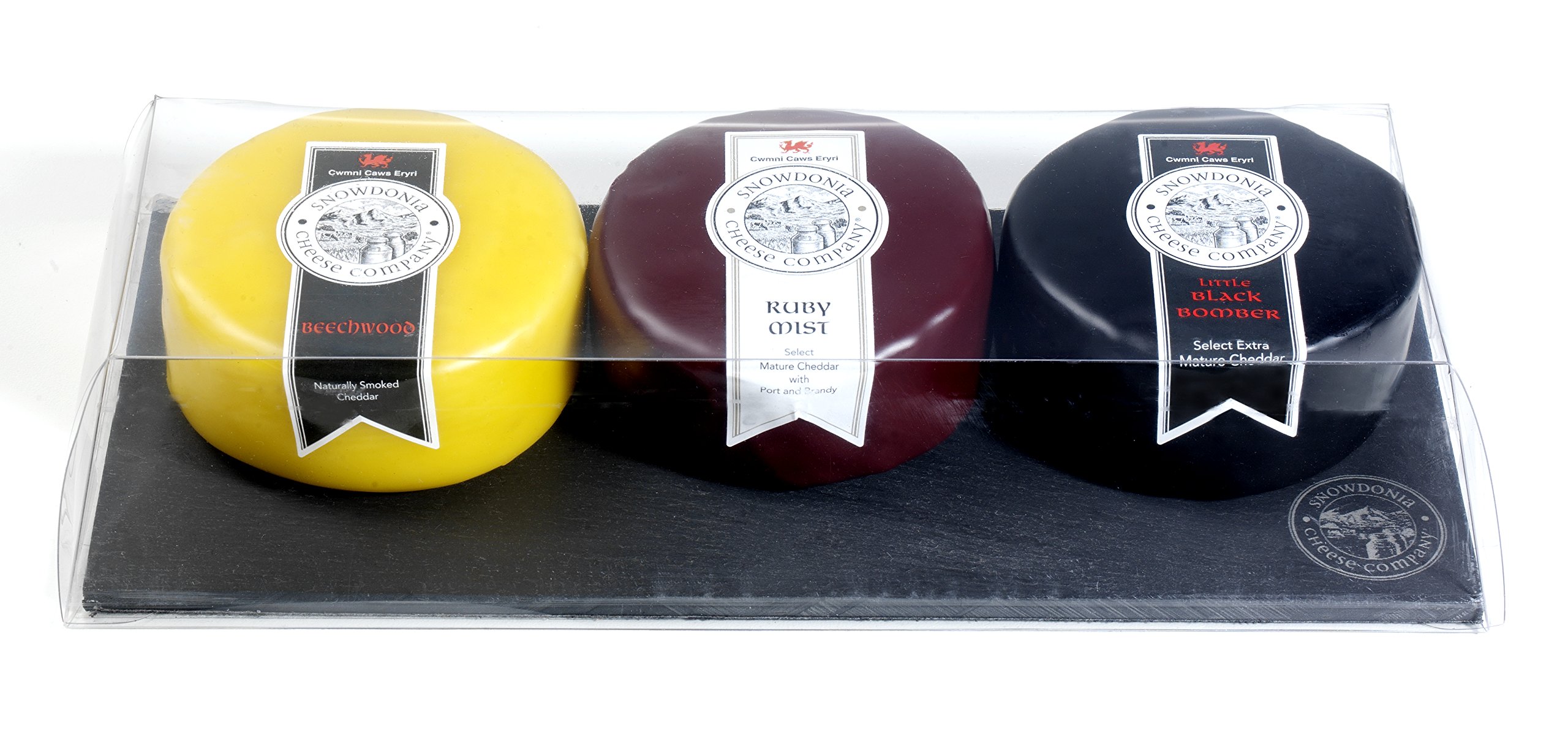 Snowdonia Cheese Company Slate Cheese Board Including Black Bomber, Beechwood & Ruby Mist 200g Truckles