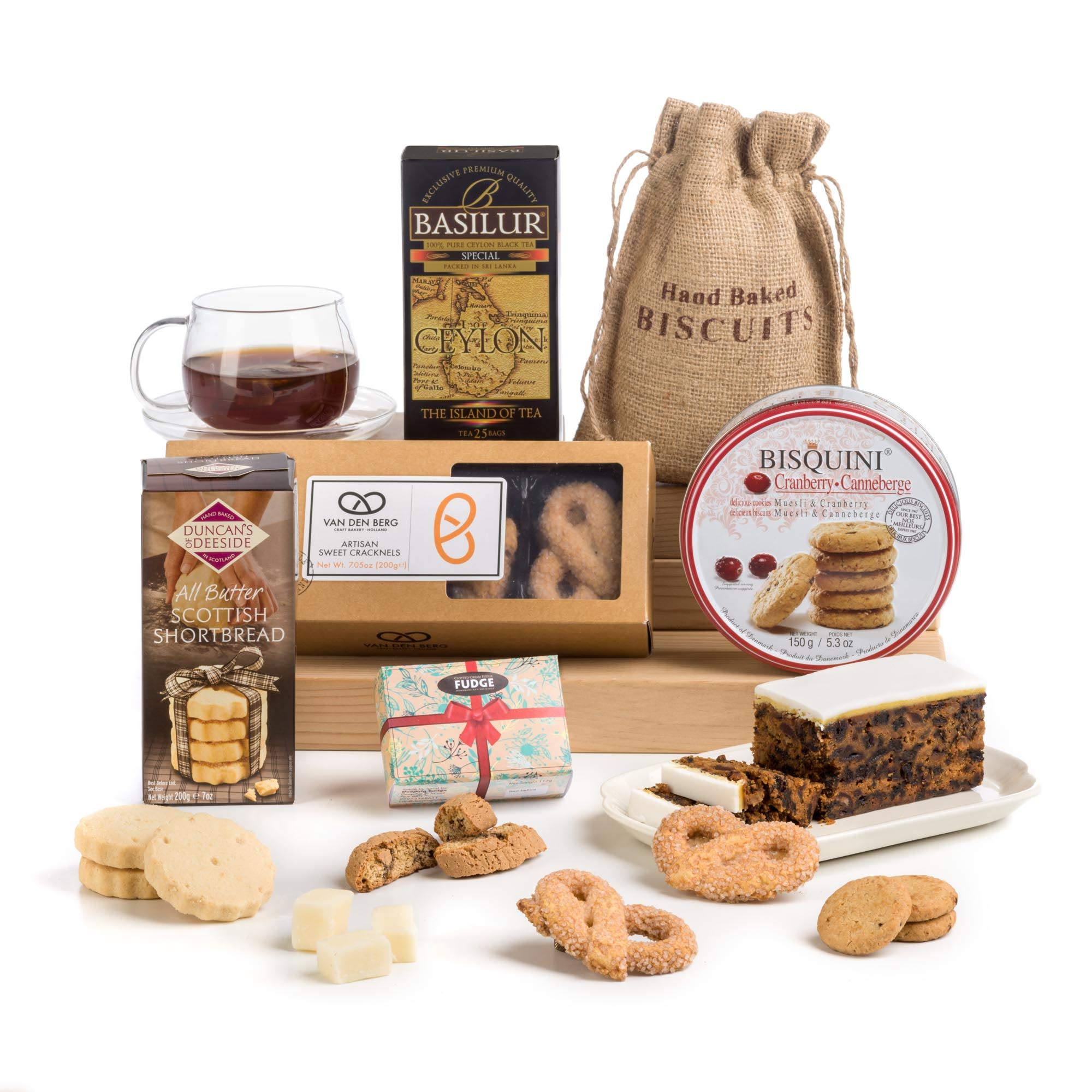 This hamper is perfect on your mum or grandma this and includes; Black Ceylon Tea, Basilur 25 teabags Artisan Iced Fruit Cake, Martins, 475g Cranberry Biscuits, Bisquini 150g All Butter
