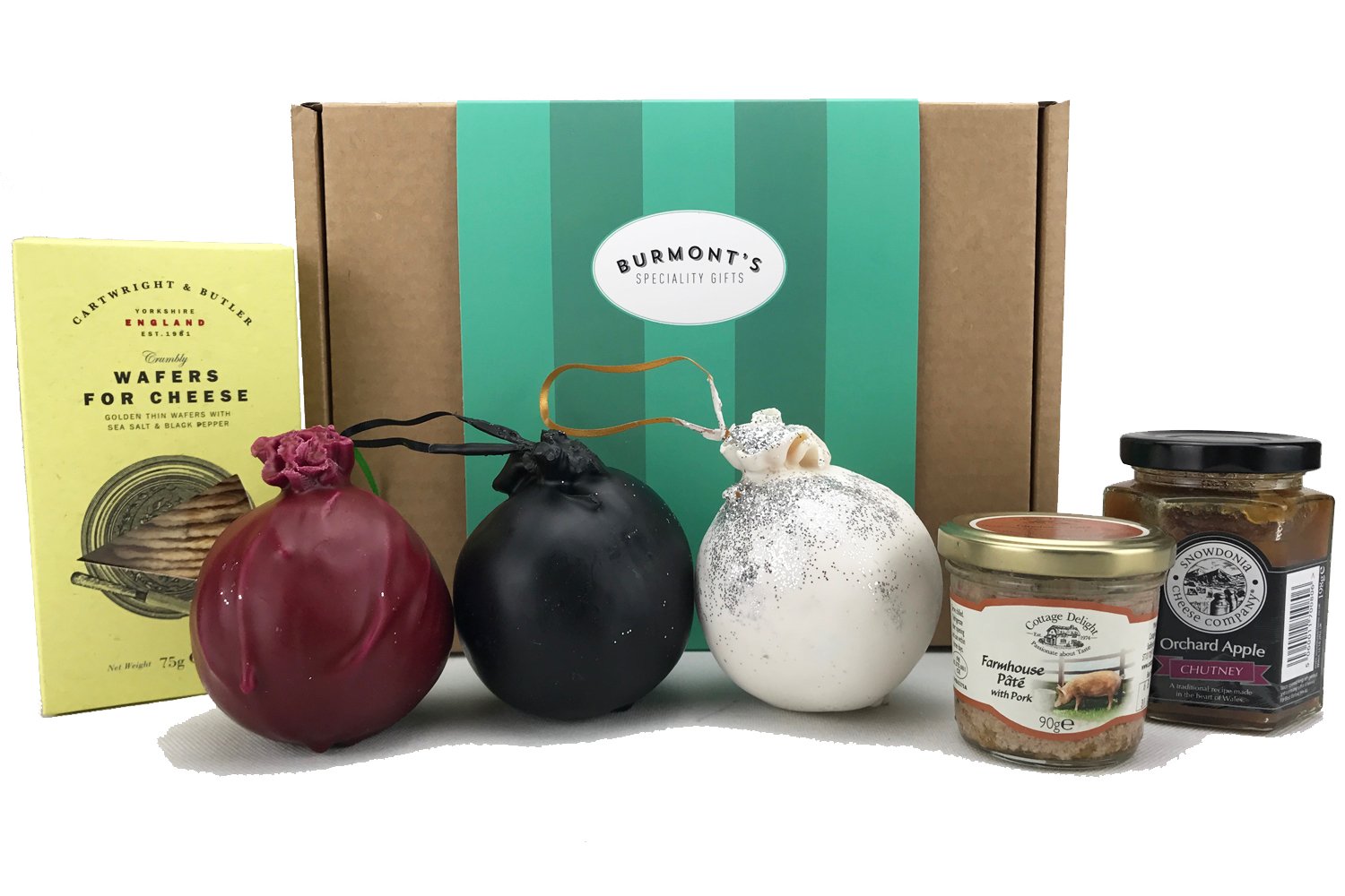Shorrocks Lancashire Cheese Bomb Gift Hamper Containing 3, 230g Cheese Bombs, Orchard Apple Chutney, Ardennes Pate & Wafers for Cheese – Hamper Exclusive to Burmont’s