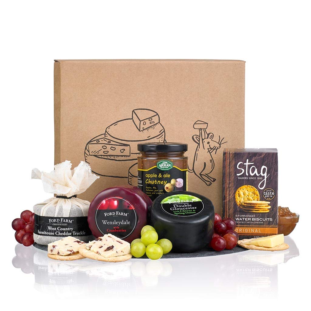 We think you would be hard pushed to find anybody that wouldn’t appreciate this box of fine cheese arriving in time for Christmas! This can be a real celebration of all things cheese, with three waxed truckles, paired with a classic combination of water biscuits and apple & ale chutney. If you know any individual who loves savoury snacks, then this classic food hampers is the choice for them! We have selected three waxed truckles all outstanding on flavour. There is the Trio of Ford Farms cheeses, with the traditional mature cheddar cheese, and the tangy double Gloucester with chives and spring onions, and not forgetting the classic Christmas favourite of Wensleydale and cranberries! Of course, no cheese hamper would be complete without crackers and chutney, of which we have selected the finest of both! Our tangy and delicious apple & ale chutney which compliments all three cheeses, and our Stag Bakery original water biscuits are the very best platter for any cheese wedge. This wonderful array of tasty treats, is nestled within a stylish box with a stylish printed lid, and can’t fail to make a memorable festive treat this Christmas. This popular gift is an affordable yet elegant, making a very good corporate gift or an ideal choice for that particular friend or circle of relatives member who just loves cheese!