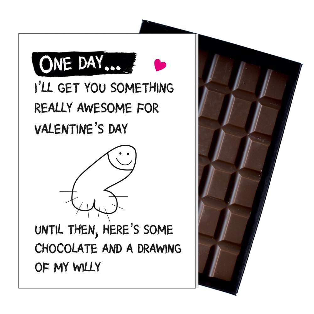 Funny Valentines Day Gifts for Women Rude Presents for Girlfriend Wife or Civil Partner 85 Gram Luxury Boxed Belgian Milk or Dark Chocolate Silly Greetings Card with Willy Theme for Lady in Your Life