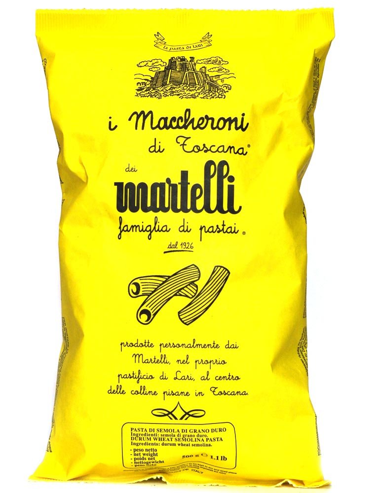 TUSCAN MACARONI BY MARTELLI 500g: This Pasta is Artisanally made in Tuscany by Slowly Kneading the Best Durum-Wheat with Room Temperature Water. It is Extruded with Bronze Dies of Small