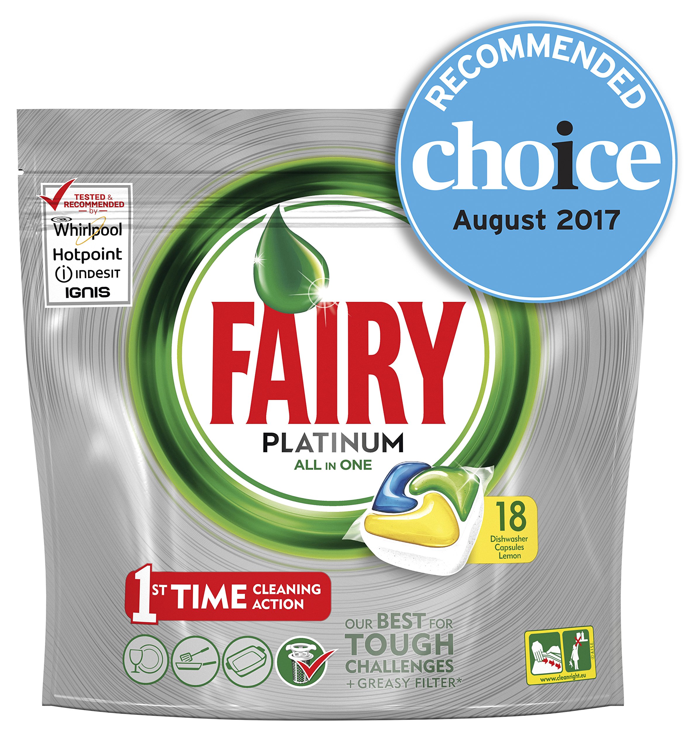 Fairy Platinum Dishwasher Tablets Lemon, 18 Tablets