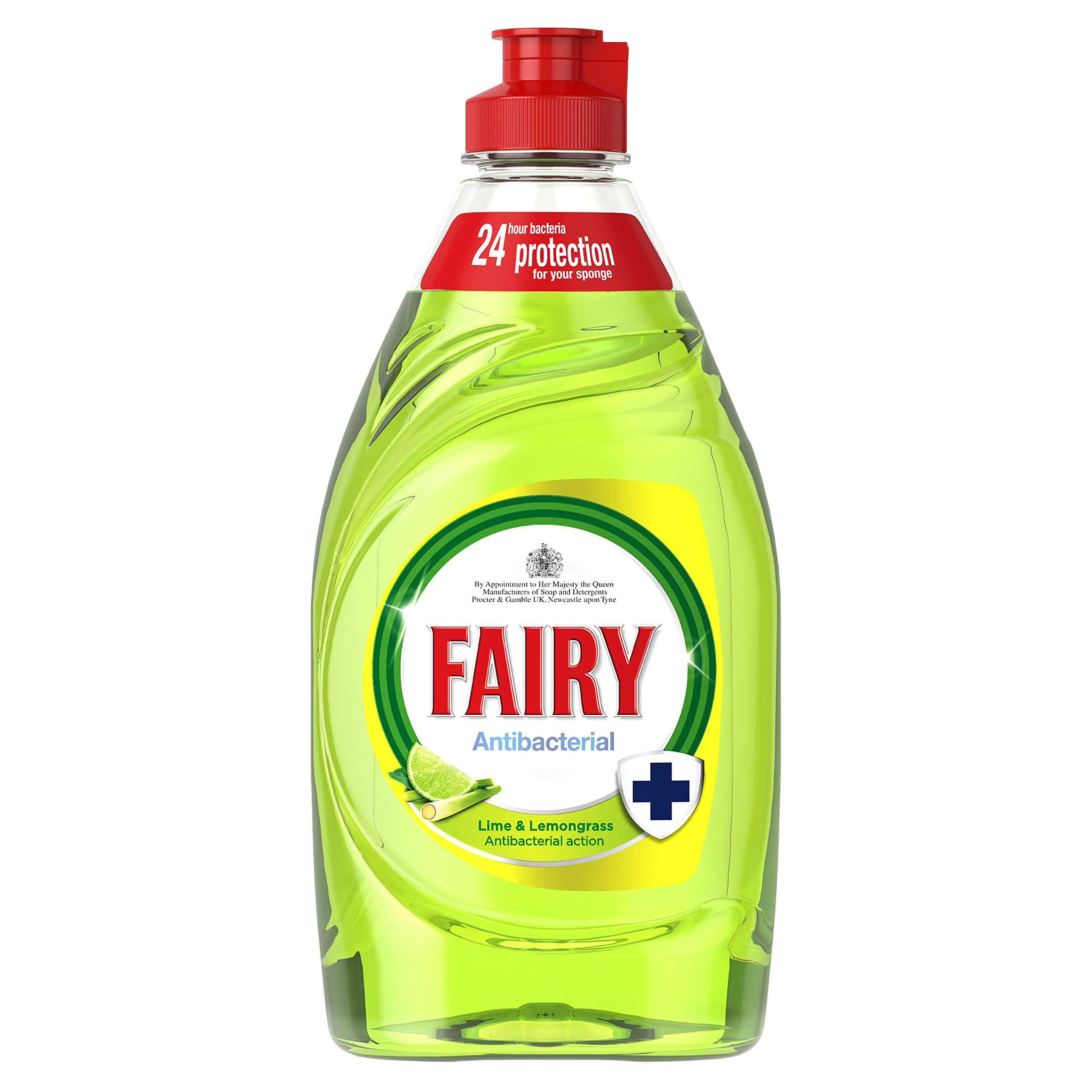Fairy Antibacterial Washing Up Liquid Lime and Lemongrass Protects You Sponge for Up to 24 Hours Against Bacterial Growth, 383 ml
