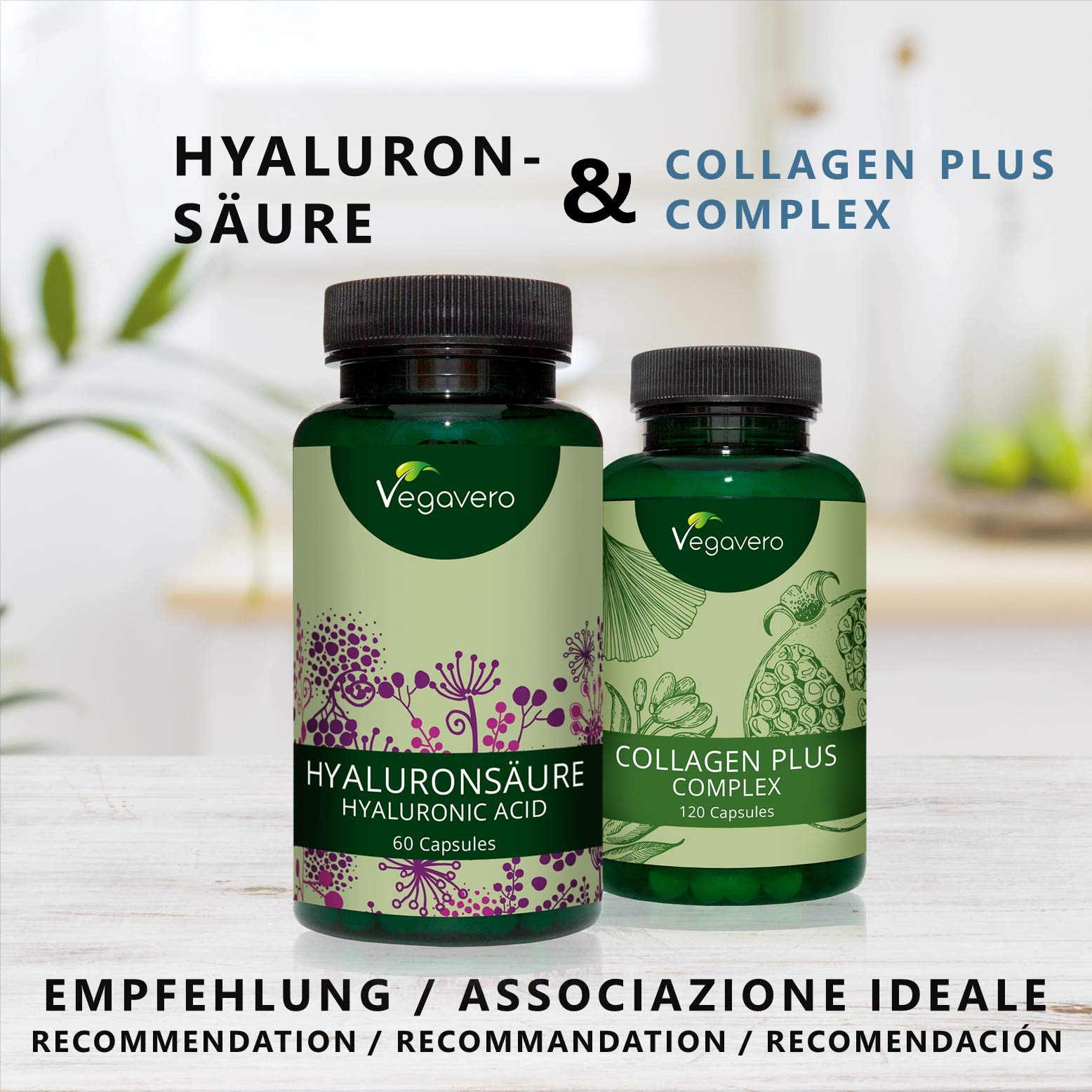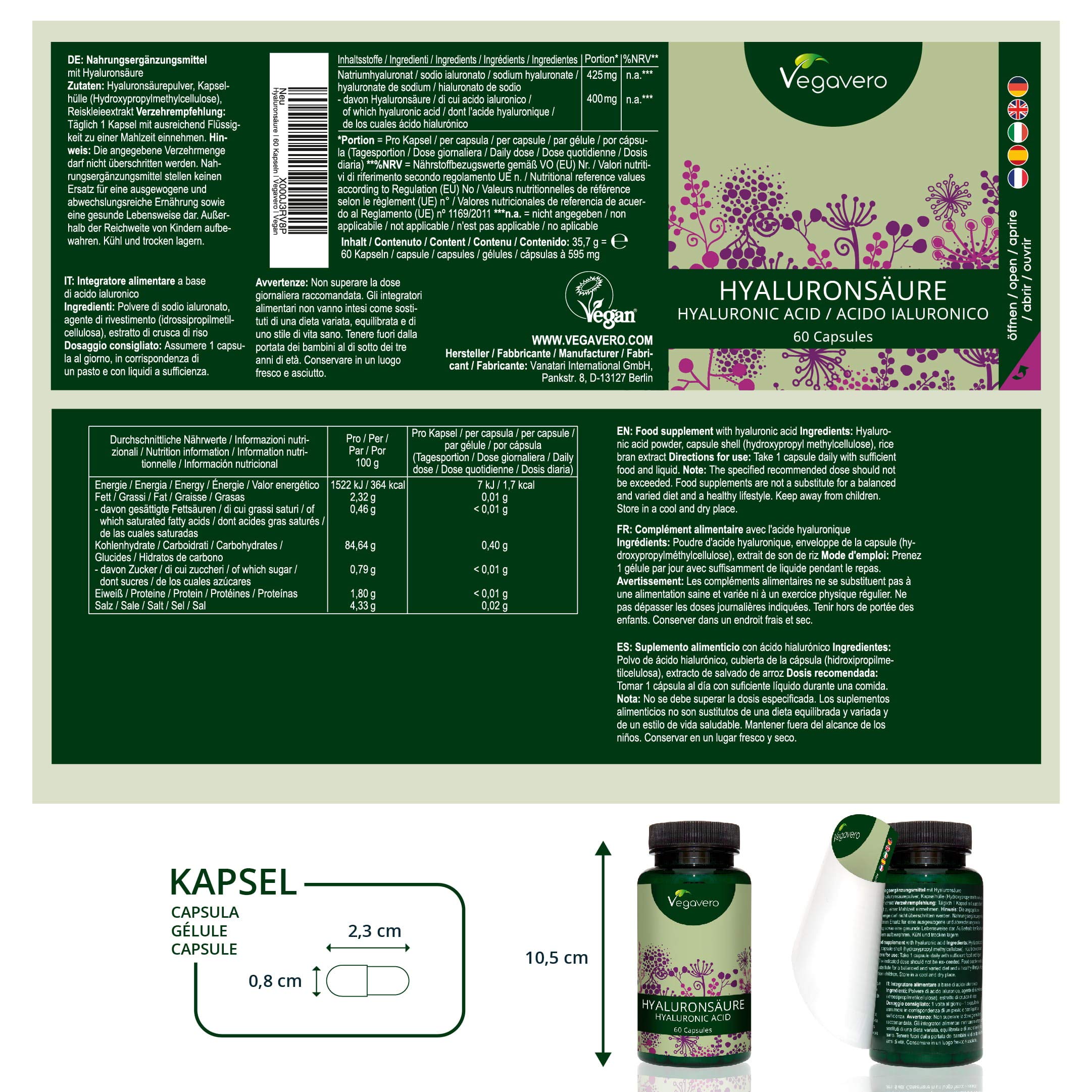 VEGAVERO® Hyaluronic Acid | 100% Plant-Based | High Dose 400 mg | Ideal Molecule Size 800-1500 kDa | Vegan | 60 Capsules