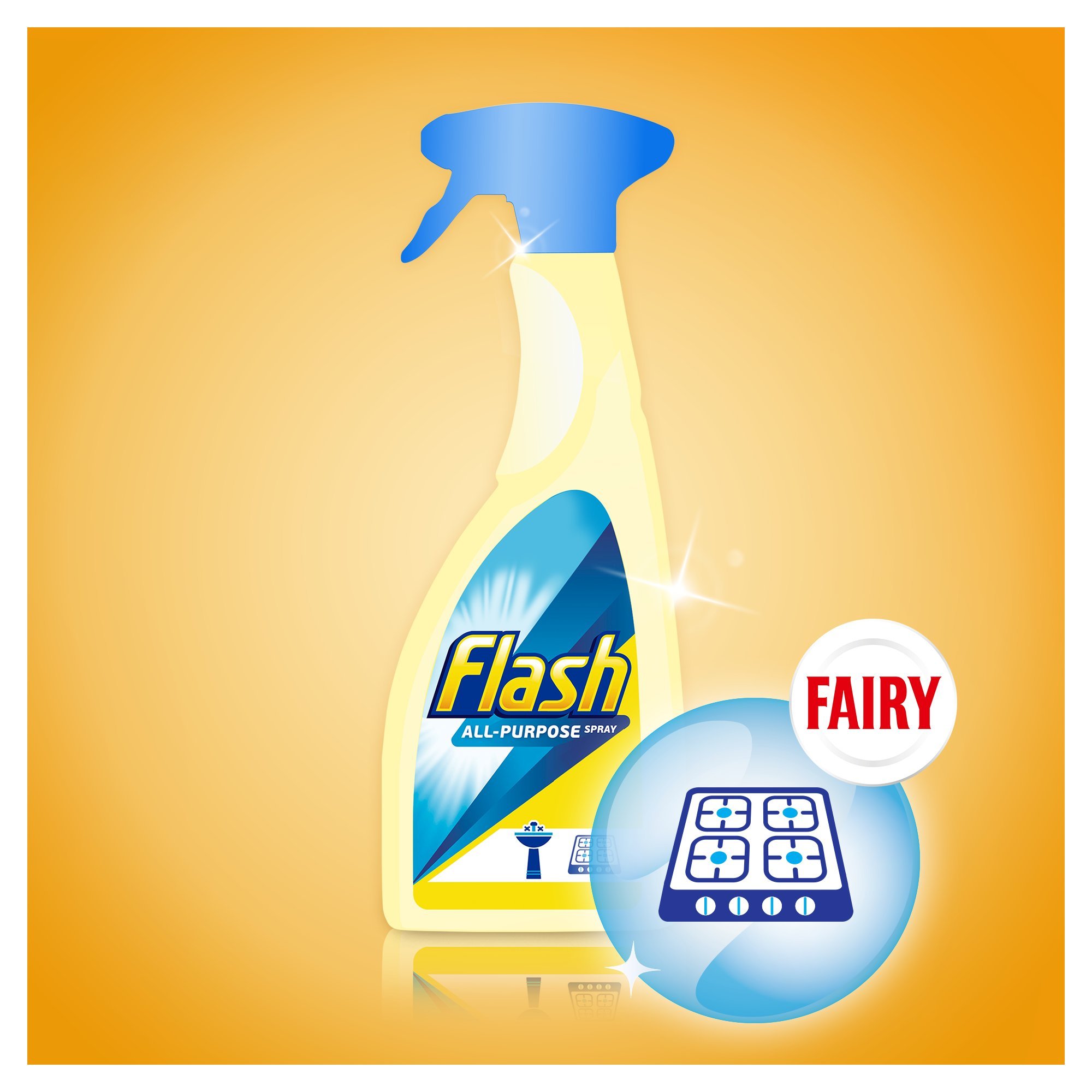 Flash Kitchen Spray Dissolves Grease and Leaves Shine, 450 ml, pack of 10