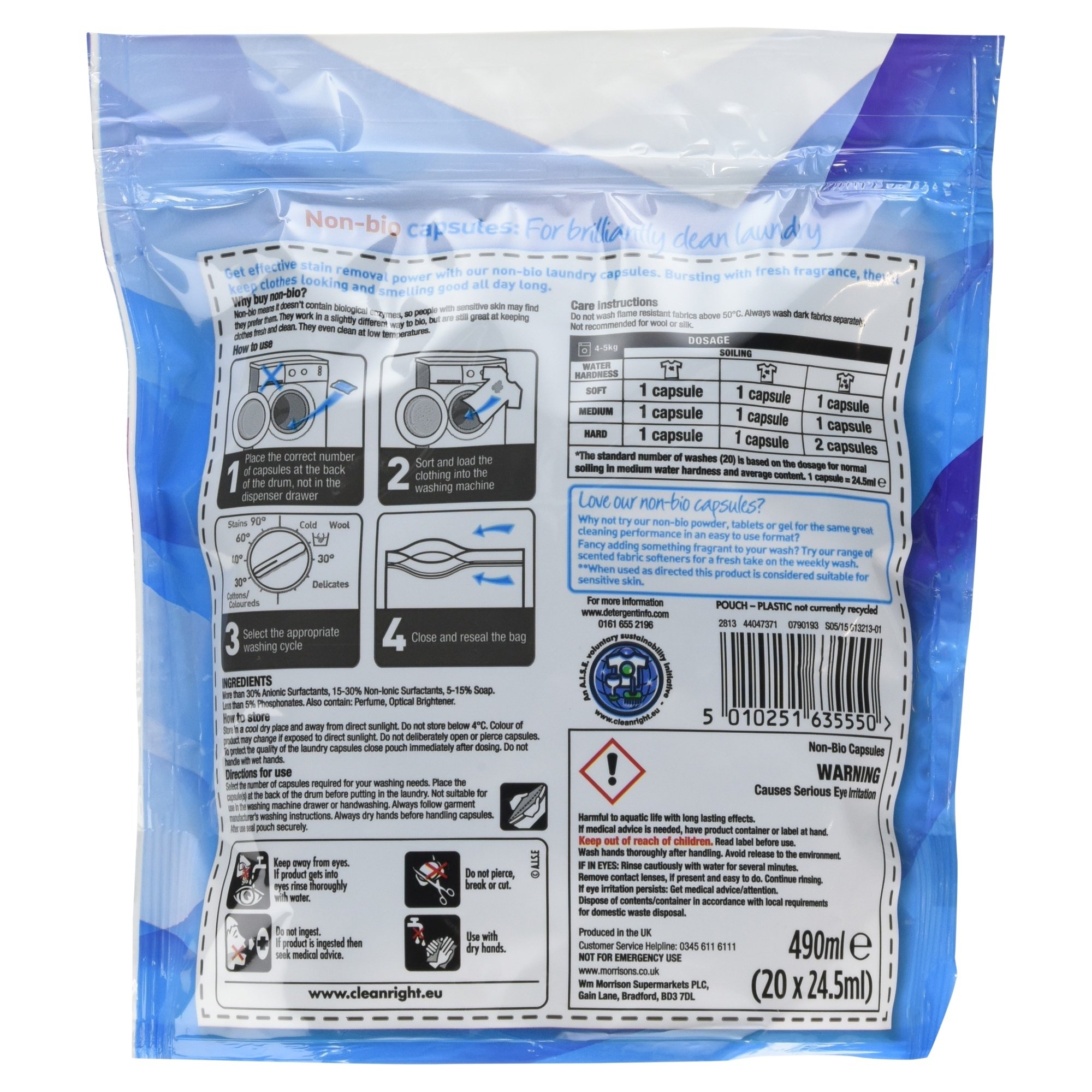 Morrisons Non-Bio Laundry Capsules, 490ml, 20 Capsules