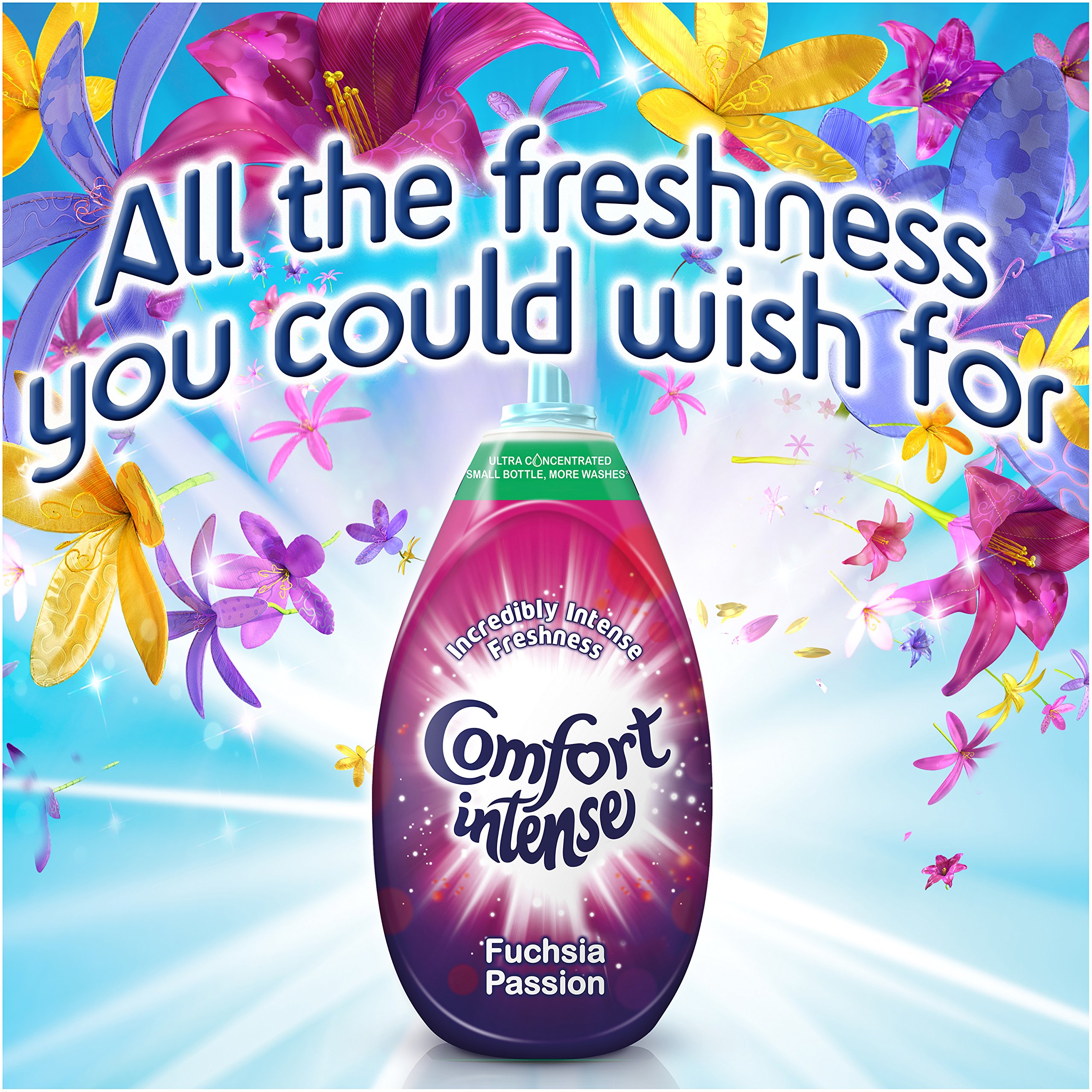Formulated to create long-lasting fragrance, Comfort Intense Fuchsia Passion Fabric Conditioner leaves you with fresh clothes that smell good and feel great