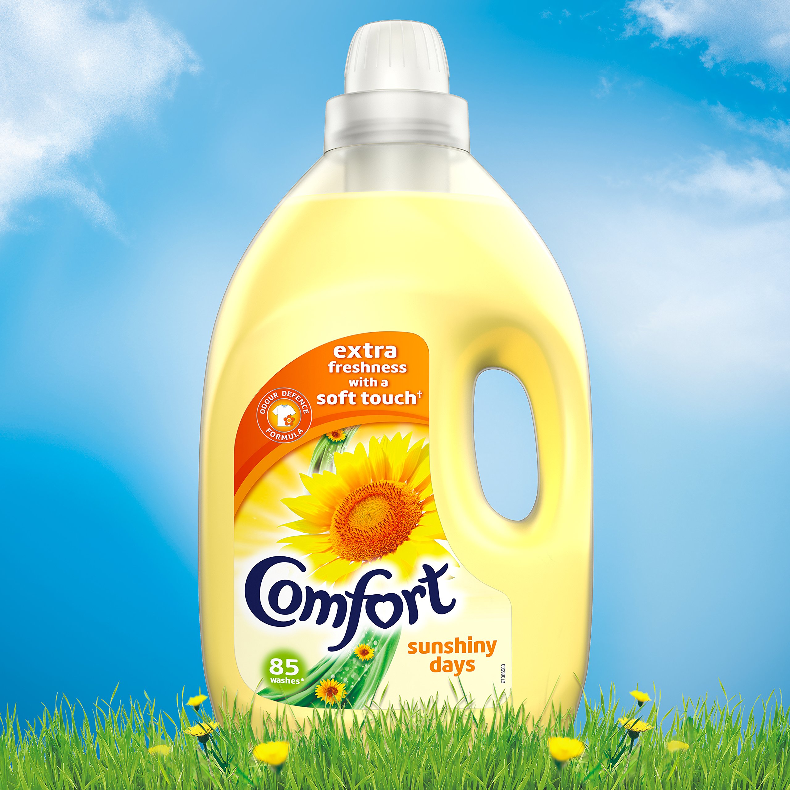 Comfort Sunshiny Days Fabric Conditioner supplies clothes with a fresh smell, remarkable softness and an out of this world fragrance