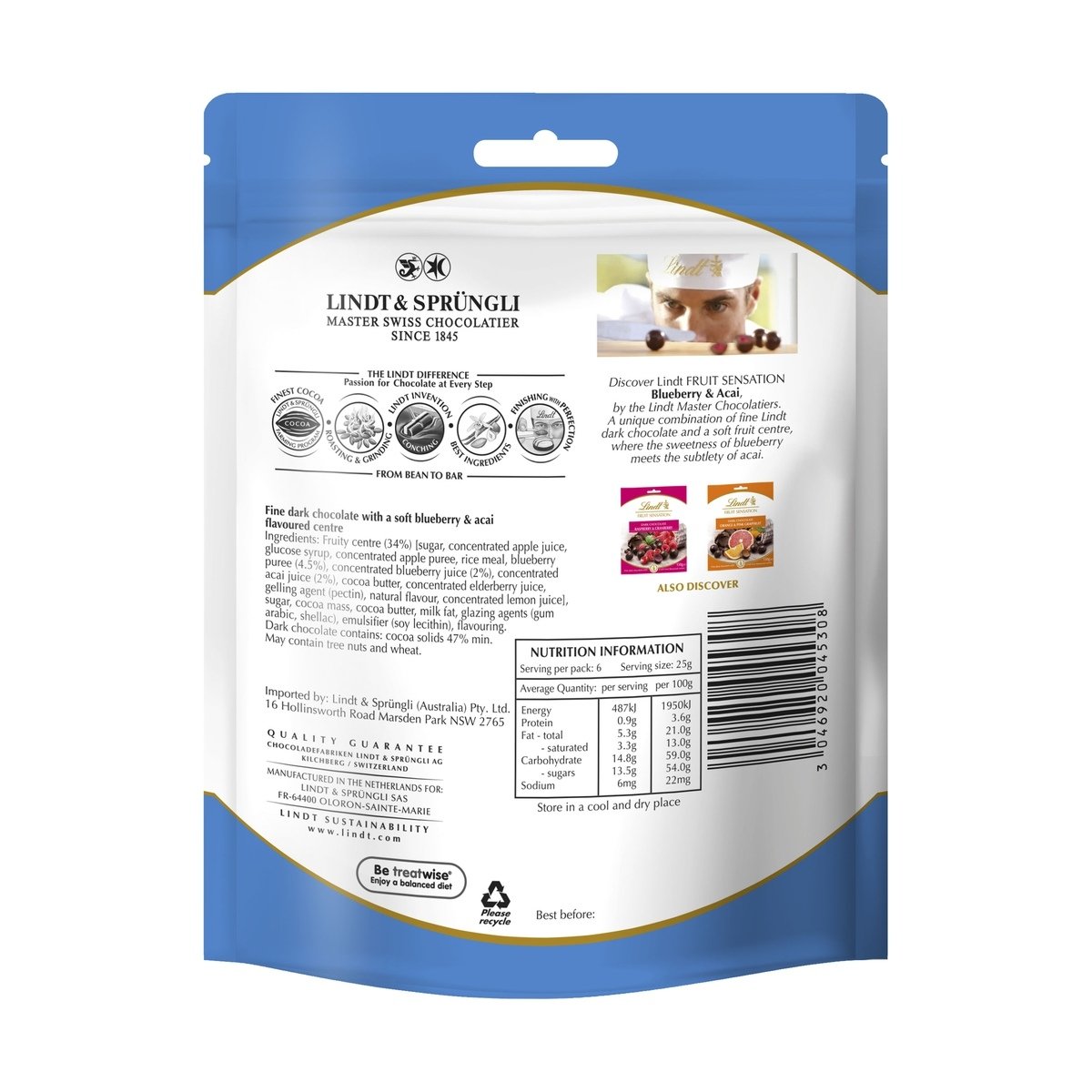 Lindt – Sensation Fruit Blueberry & Acai – 150g