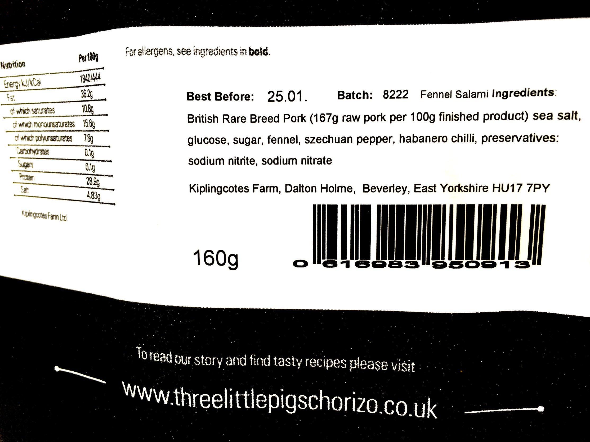 | Style | British Fennel Salami, British Mild Chorizo, British Spicy Chorizo |