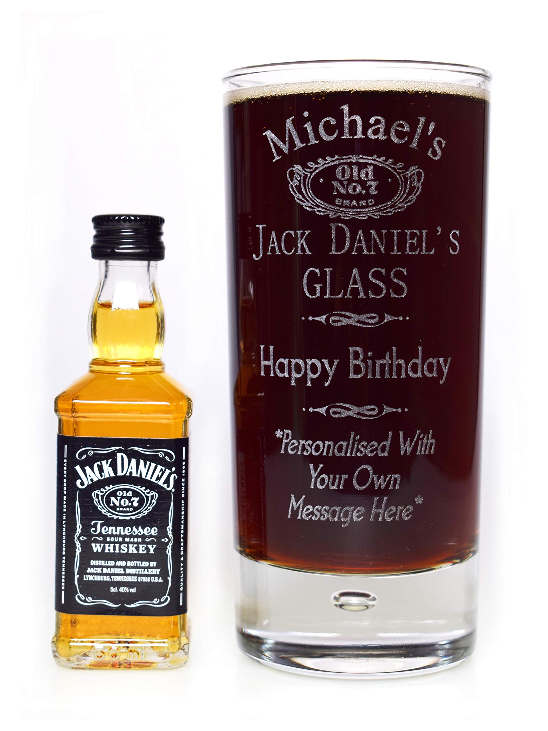 Engraved/Personalised *Jack Daniels Special Occasion Design* Bubble Based Highball Glass & Miniature Bottle of Jack Daniel’s
