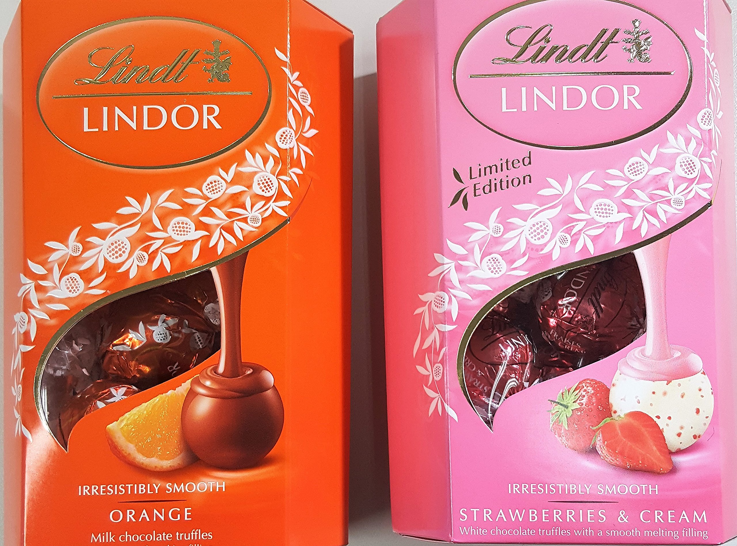Lindt Lindor Milk Orange & Strawberry & Cream Cornet 200g, The delicious and lavish white chocolate truffles have refined strawberry items and are full of the famous LINDOR irresistibly smooth melting filling. They’re certain to soften your beloved’s heart this season! plus the similar however with Orange Mmmmmmm.