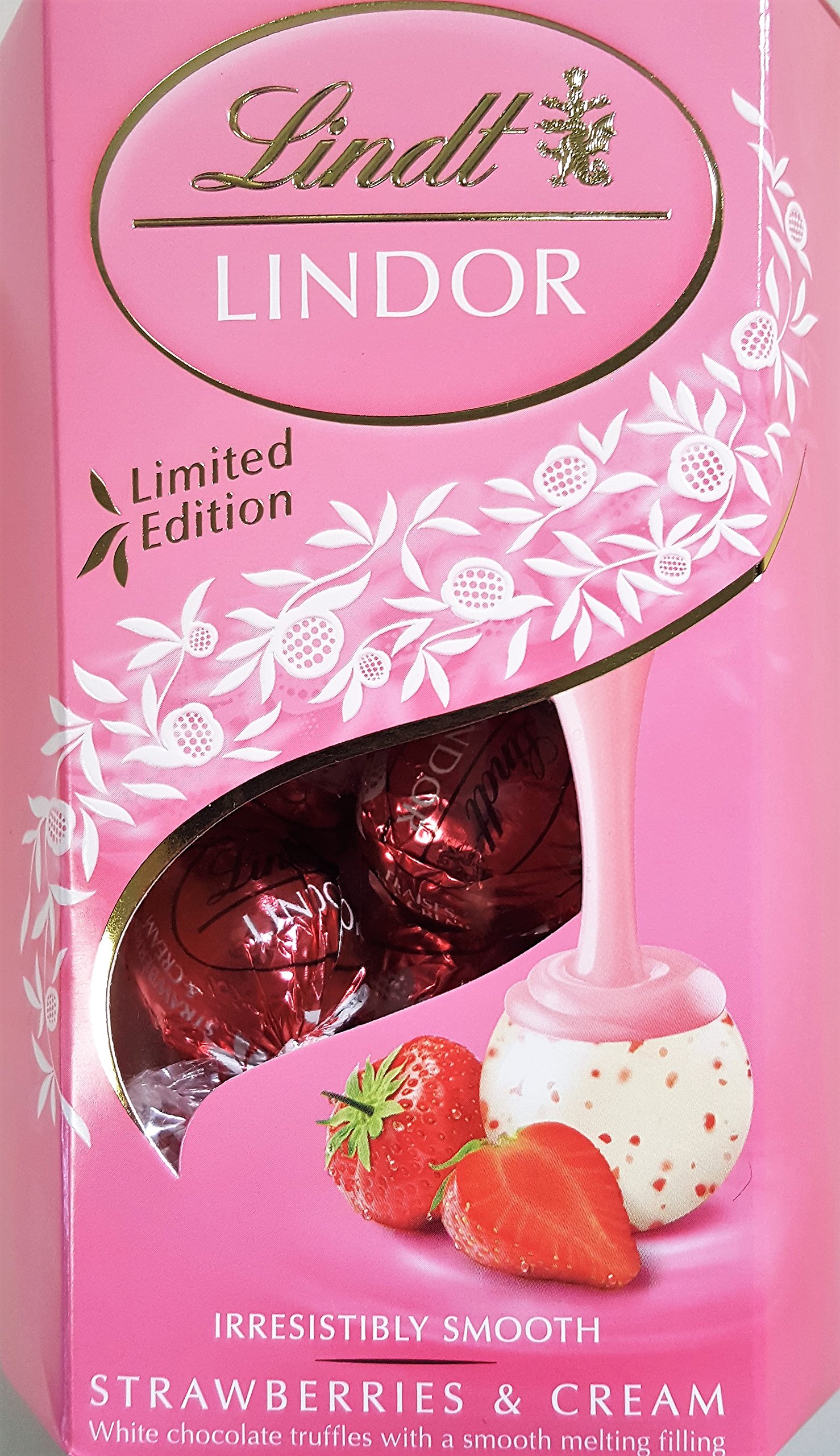Lindt Lindor Milk Orange & Strawberry & Cream Cornet 200g, The delicious and lavish white chocolate truffles have refined strawberry items and are full of the famous LINDOR irresistibly smooth