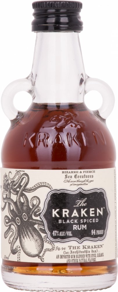 The Kraken is the primary imported black rum from the Caribbean blended with over 11 secret spices and weighs in at an impressive 80 proof.